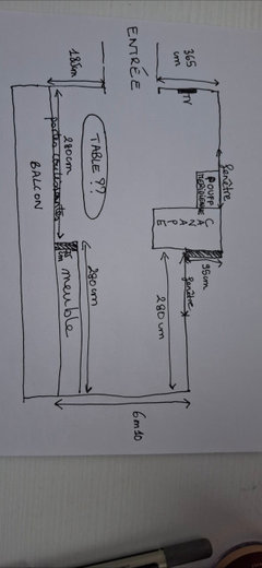 Mon objectif est de pouvoir intégrer cette table sans perdre trop d’espace, et surtout sans donner l’impression d’un meuble posé “là comme ça”, sans vraie réflexion d’aménagement. J’aimerais que la circulation reste fluide et que l’ensemble soit harmonieux.