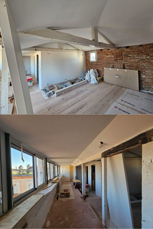 J'ai beaucoup de poutres apparentes et il n'est pas possible de récupérer le bois d'origine (ce que je souhaitais à la base). Je dois donc me résoudre à les faire peindre, mais je n'arrive pas à décider de la couleur.