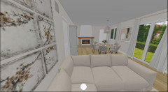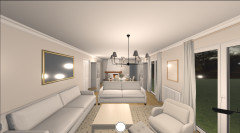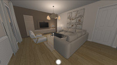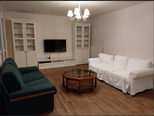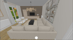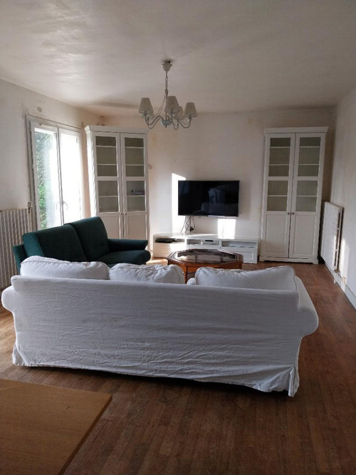 Je ne suis pas encore sûre de la disposition des canapés : j’ai essayé de placer un trois-places face à la TV et je trouvais cela très imposant, ça coupe vraiment la pièce en deux et on a l'impression qu'elle est plus petite. Dans ce cas, je pense qu’un deux-places irait mieux.Utilisateur Houzz - 470163535