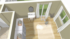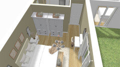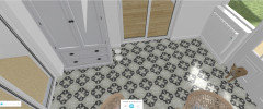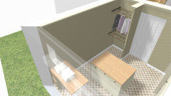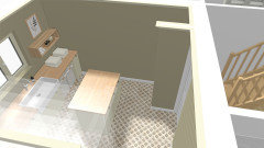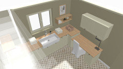 Je m'aperçois que j'ai oublié de vous joindre les visuels de la buanderie, avec l'îlot supprimé et remplacé par un plan pour la machine à coudre et rangements muraux supplémentaires, limités à deux éléments pour ne pas alourdir visuellement.