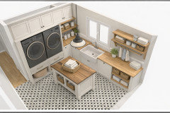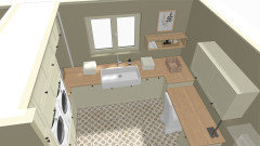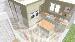 Concernant la buanderie, dans ce cas, il vaut mieux supprimer l'îlot et favoriser l'espace couture et des meubles de rangement.