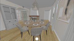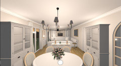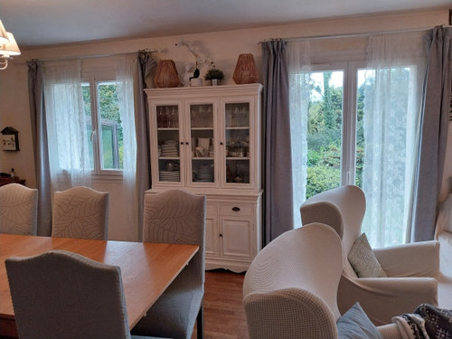 Concernant les meubles côté salle à manger, je pense qu'il ne faut en garder qu'un car ça réduit trop l'espace. J'avais mon vaisselier Maison du Monde entre la fenêtre et la porte fenêtre et il n'y avait pas de marge pour les rideaux.