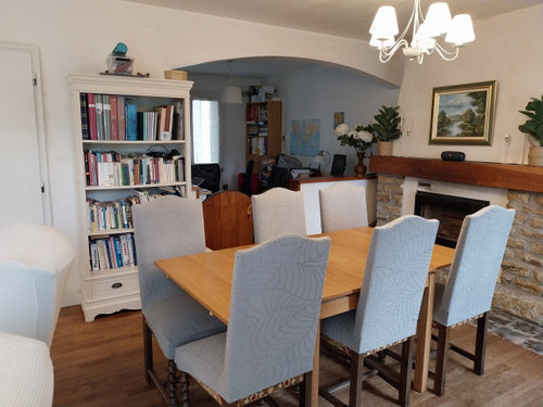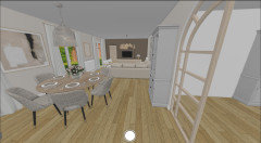 On affinera tout cela une fois le mobilier bien arrêté. Concernant un tapis sous la table de repas, je suis un peu réservée : cela peut vite alourdir visuellement et ce n’est pas toujours très pratique avec les chaises. À moins d’opter pour un tapis très large, d’autant plus que l’on est proche de la cheminée, qui est déjà un élément fort.