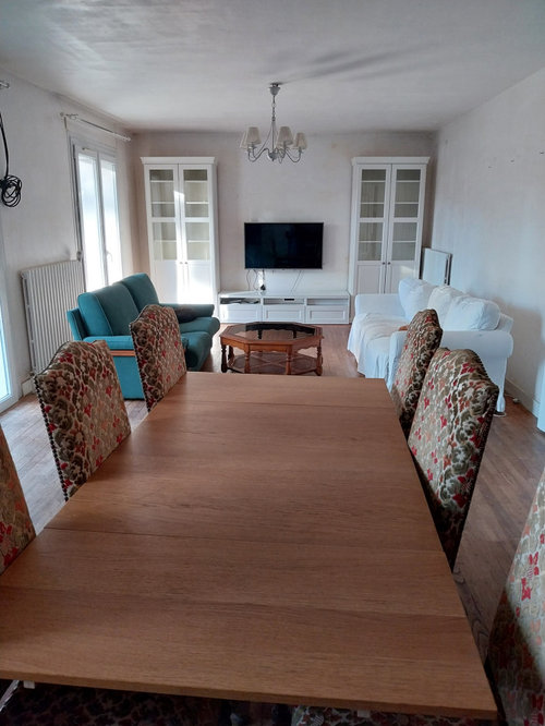On rénove actuellement notre pièce de vie (salon / salle à manger / pièce familiale). C’est une pièce longue et étroite, et j’ai beaucoup de mal à trouver un aménagement du mobilier qui soit à la fois fonctionnel et harmonieux.