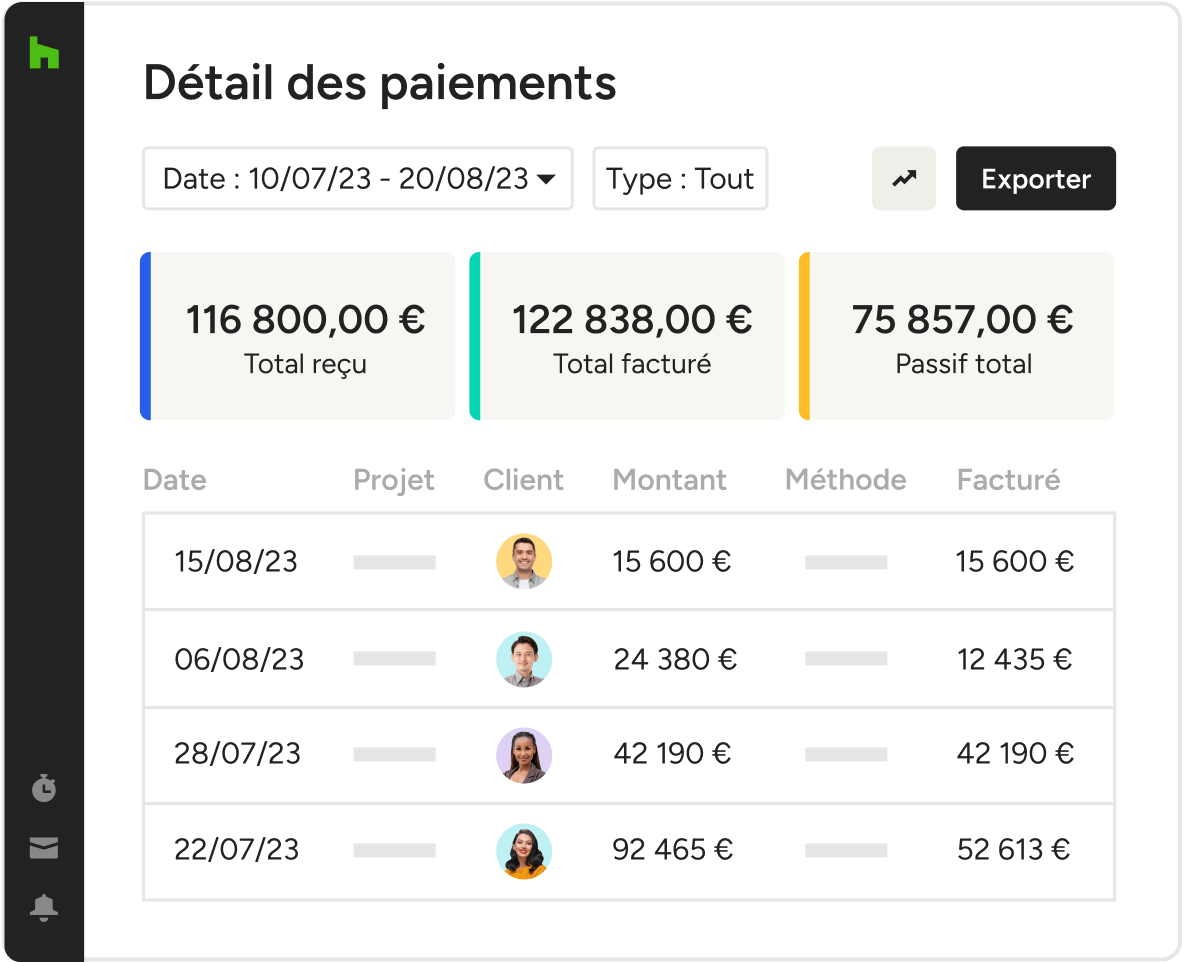 - Suivi des paiements : Restez informé des paiements en attente et envoyez des rappels automatisés si nécessaire.