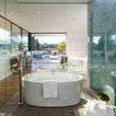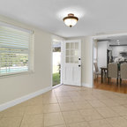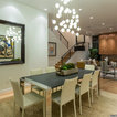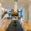 The open plan allows views from one room to the other. The dining room shares the living room light.