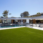 Black and white photograph of rear yard elevation. Photo by Clark Dugger