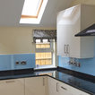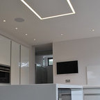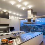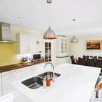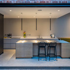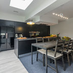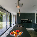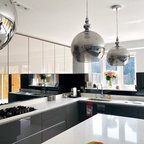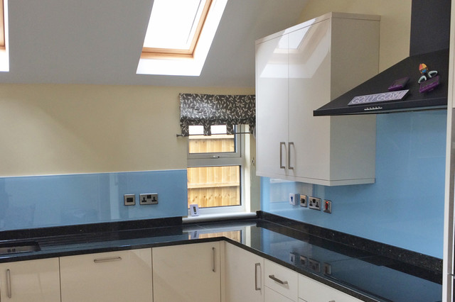 Réalisation d'une cuisine minimaliste de taille moyenne avec une crédence en feuille de verre. — Houzz