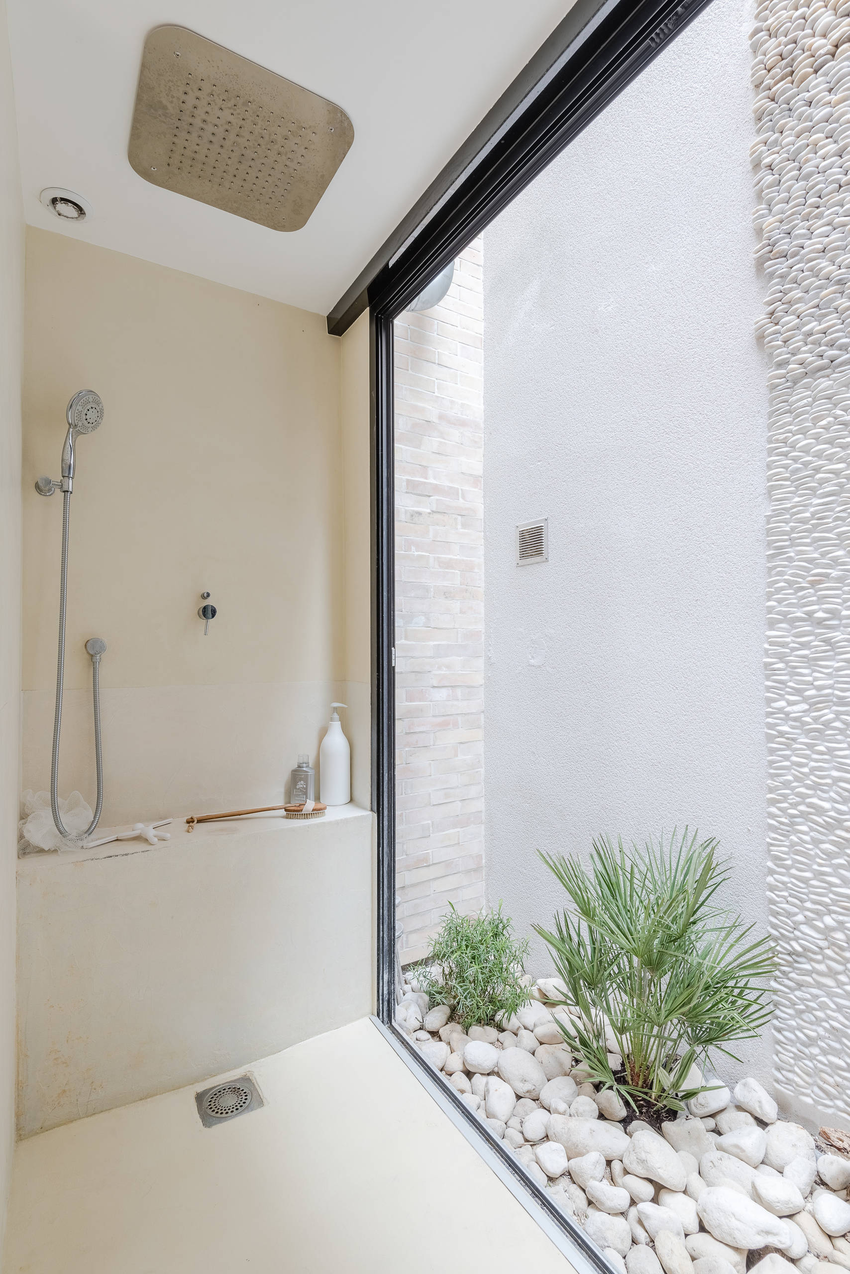 Dans l’esprit des jardins japonais, une douche donnant sur un patio offrira une vue unique et apportera une touche d’originalité et de détente. La fenêtre sera une excellente paroi de douche.