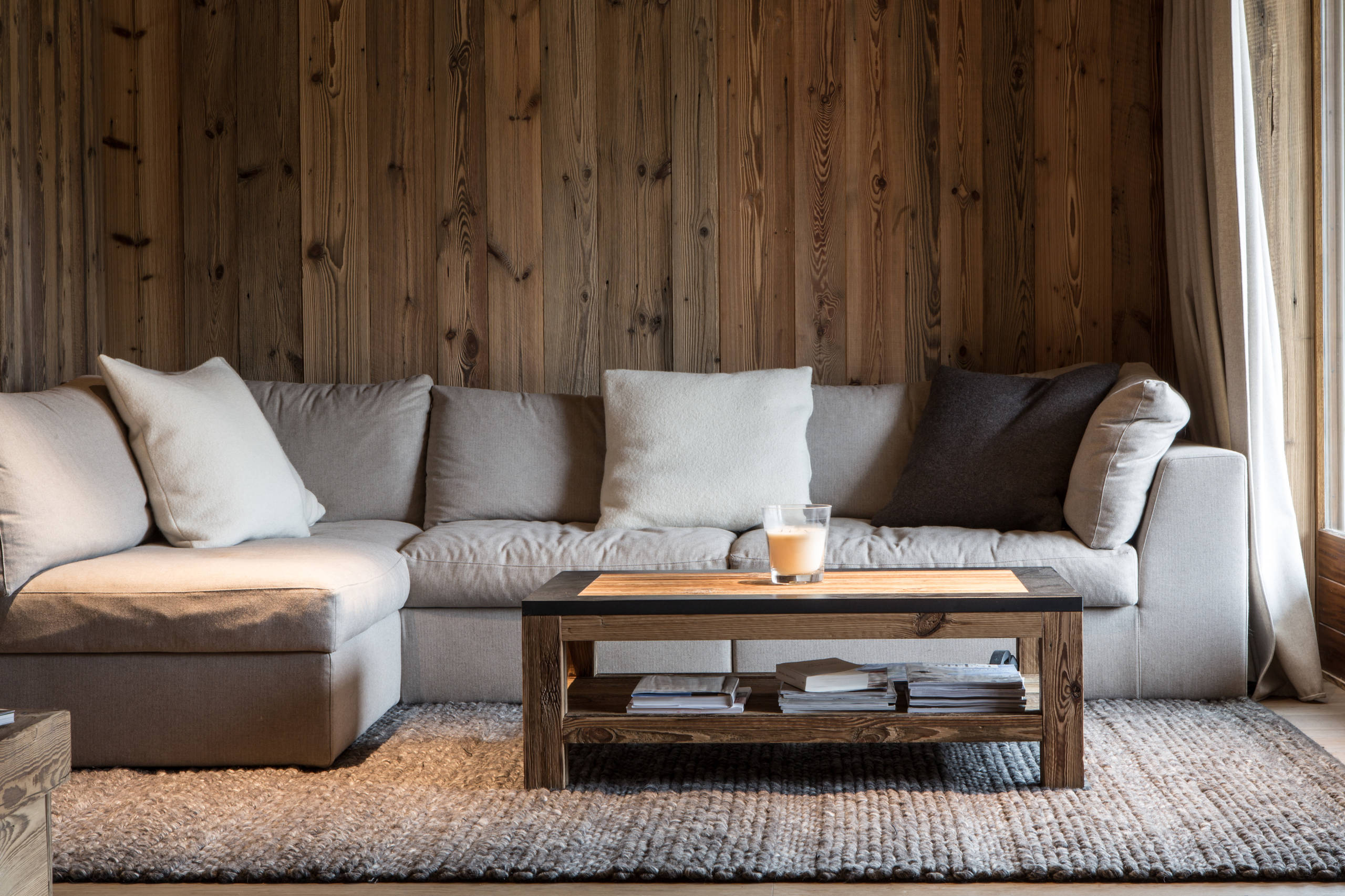 Le bois, de par sa texture et sa couleur, véhicule visuellement un sentiment de chaleur et de confort. C’est aussi un excellent isolant, qui permet de canaliser l’entrée du froid dans la maison. On choisit donc, pour réchauffer son intérieur, de venir habiller certains murs stratégiques, qui permettront de formaliser de jolis petits coins douillets.