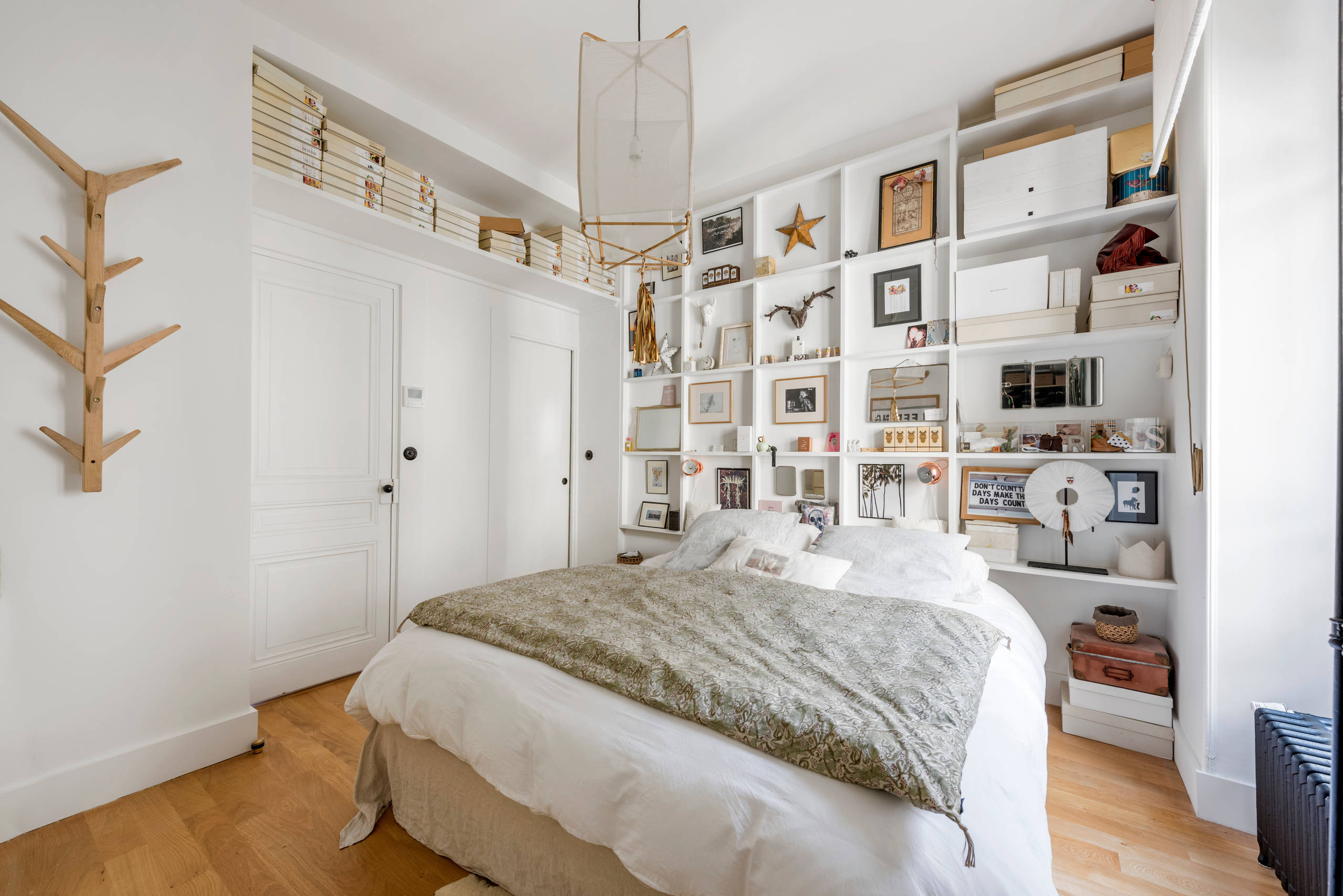 On aime : Cette grande bibliothèque plaquée au mur et remplie de livres qui offre une très belle alternative et permet de joindre l’utile à l’agréable
