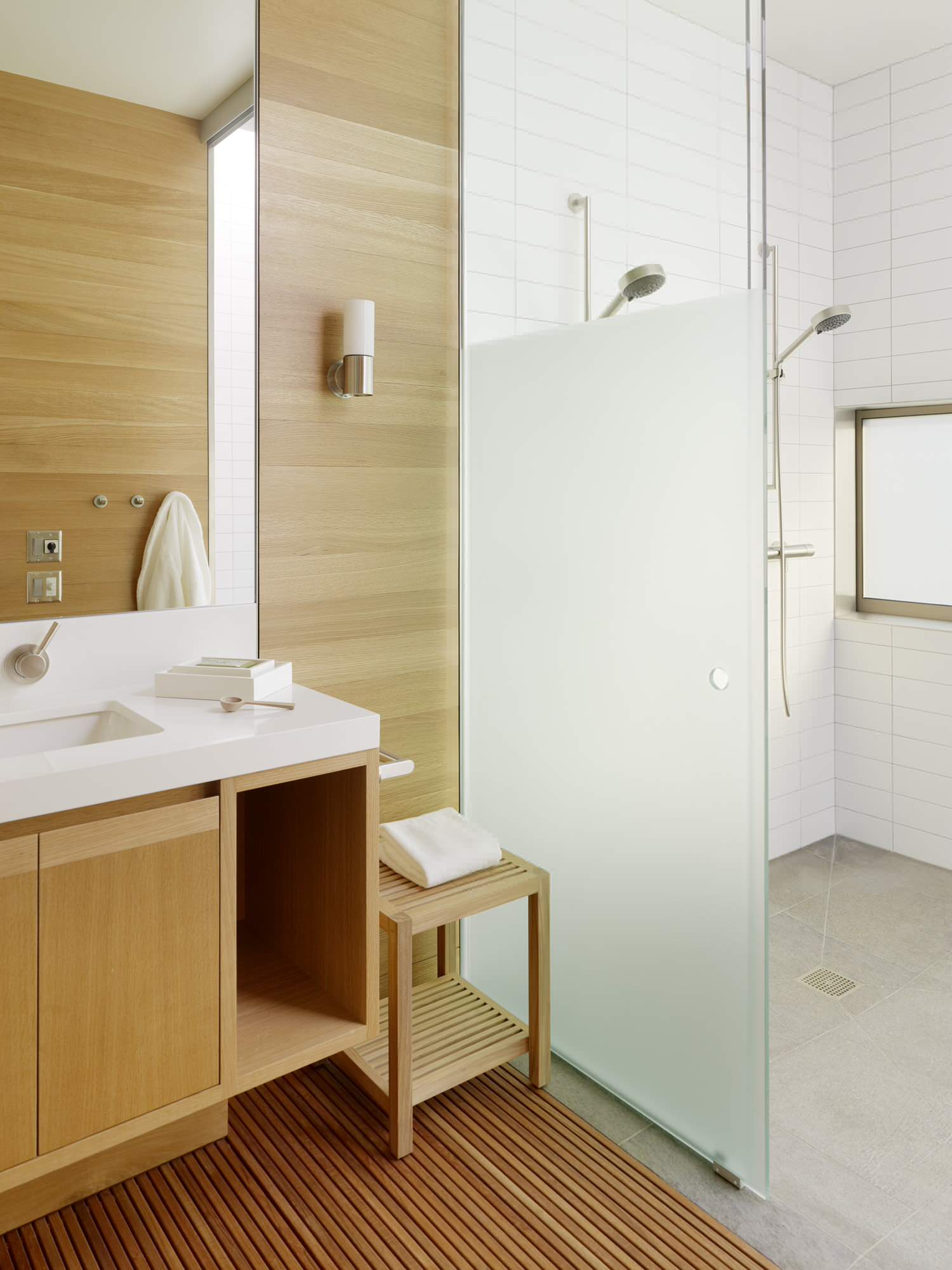 Dans le cas des salles de bains attenantes à une chambre parentale, on peut imaginer de supprimer la séparation entre les deux pièces ou alors une cloison vitrée, qui permet de profiter de la lumière naturelle. La sensation d’espace dans chacune des zones sera aussi augmentée.