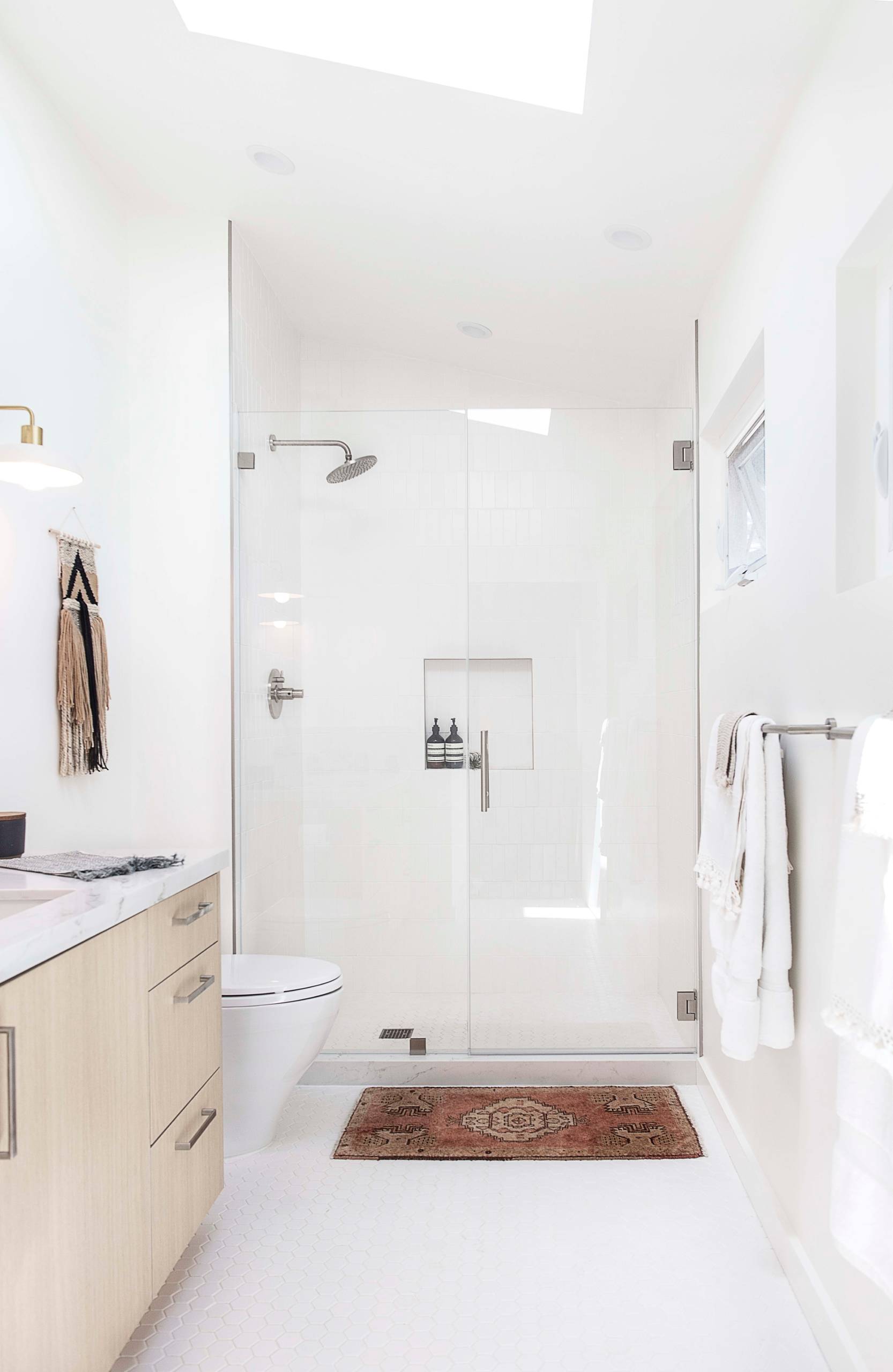 Pour que son usage quotidien ne se transforme pas en calvaire, il faut aussi faciliter l’entretien de la salle de bains. Quoi de plus pénible en effet que de devoir passer la serpillière après chaque douche ? Pour cela, il faut bien anticiper, en fonction de l’emprise de votre douche, la largeur de la paroi vitrée nécessaire pour vous isoler correctement. Fixe ou ouvrante, elle doit être un peu plus haute que la douchette ou le ciel de pluie et faire au moins 80 cm de large.