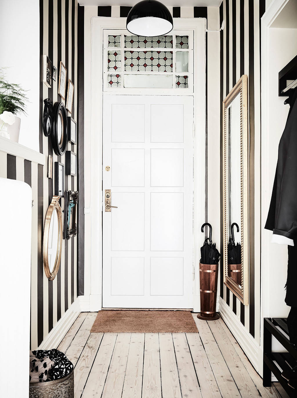 Vérifier sa coiffure, son maquillage, le boutonnage de sa veste sont autant de gestes quotidiens rassurants que l’on fait juste avant de quitter sa maison. Un miroir est donc indispensable et vous pouvez jouer le jeu de l’accumulation en mélangeant les formes et les styles. Pensez à en mettre certains à hauteur d’enfant et d’autres rectangulaires plus grands, pour se voir de pied. En plus d’apporter une touche décorative, les miroirs renvoient la lumière et agrandissent la sensation d’espace.