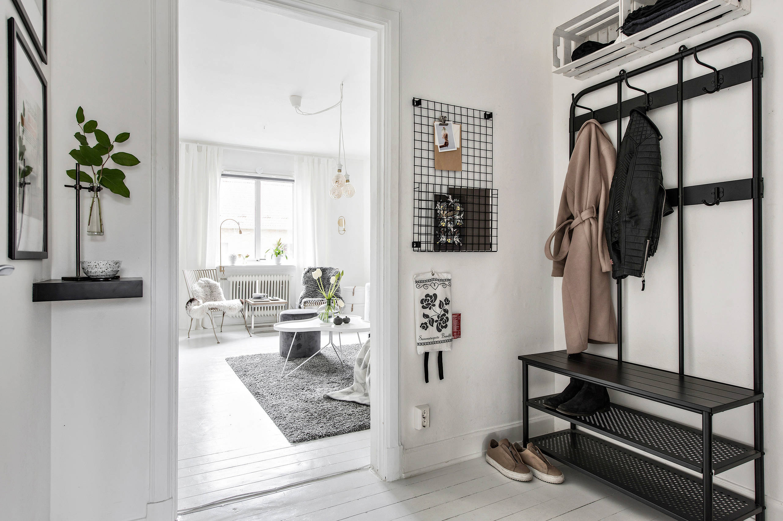 Souvent boudée des entrées, l’assise, si elle est légère et facile à transporter, est pourtant une pièce de mobilier indispensable. Sous la forme d’un banc, si vous avez la place, ou d’une simple chaise, cela vous permettra de vous chausser et déchausser confortablement assis.