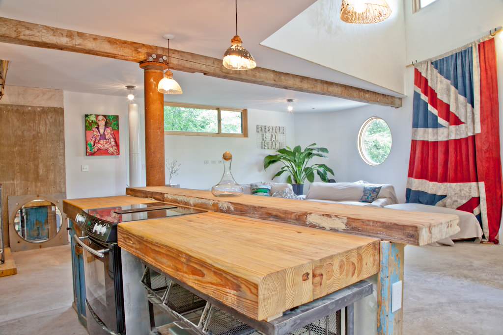 Encore plus quand il est utilisé dans sa forme brute comme dans cette cuisine éclectique. Le bois massif est un matériau vivant dont l’aspect évolue avec le temps. Il se patine et devient plus foncé pour les teintes claires ou au contraire plus clair pour les bois foncés. Il est aussi de plus en plus fragile avec les années, attention donc aux fissures.