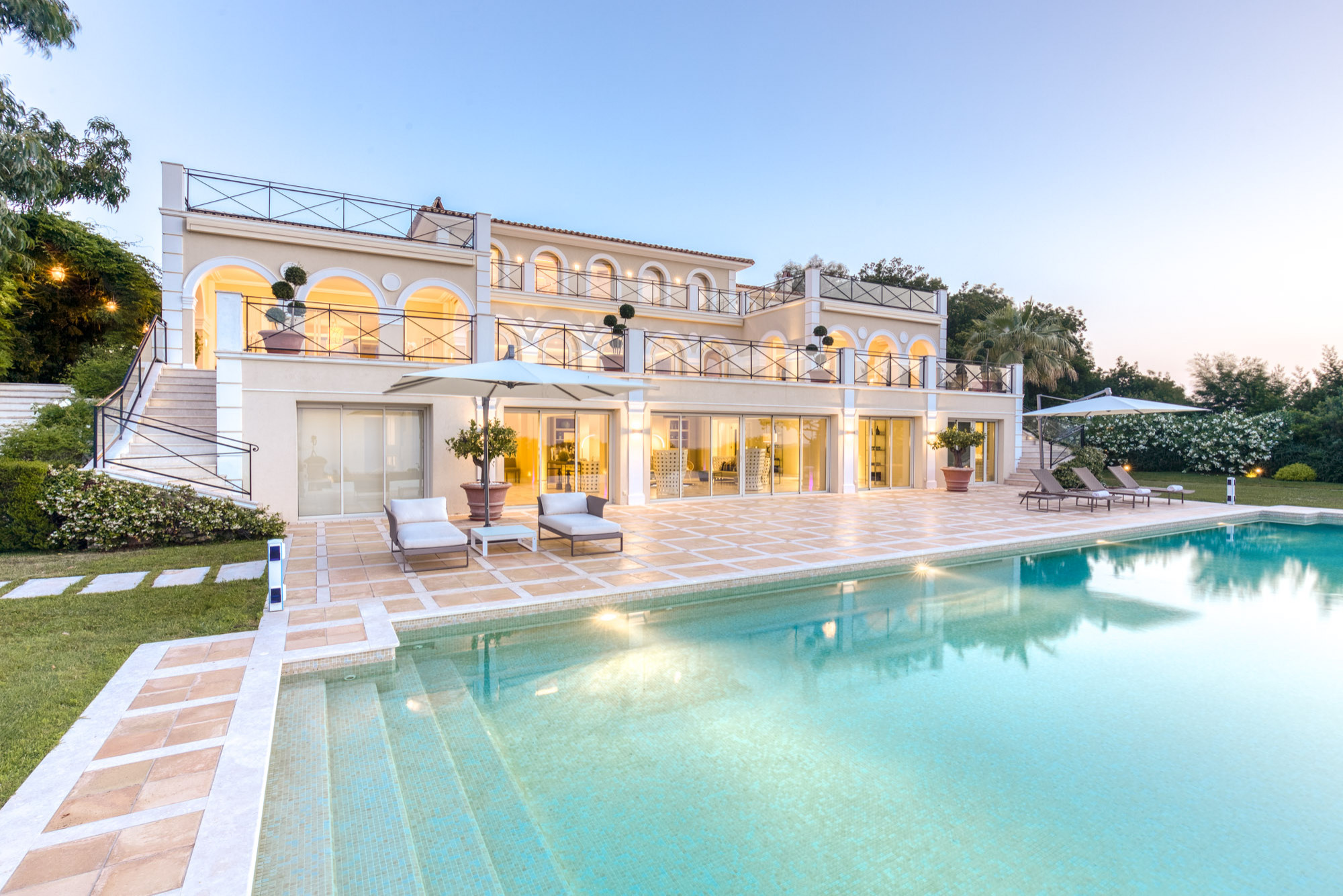Autour du bassin, un dallage mêlant pierre naturelle et terre cuite réchauffe l’ambiance et souligne le style méditerranéen de la demeure. Les larges ouvertures vitrées prolongent l’espace de vie vers l’extérieur, favorisant une harmonie fluide entre architecture et nature.