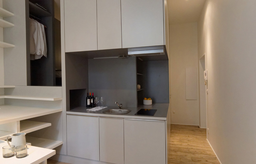 En vous passant de la plaque de cuisson, vous pourrez miser sur un plan de travail moins profond : 40 cm contre 60 cm traditionnellement. dans un studio c’est parfois l’espace qui manquait pour bénéficier d’une circulation plus fluide.