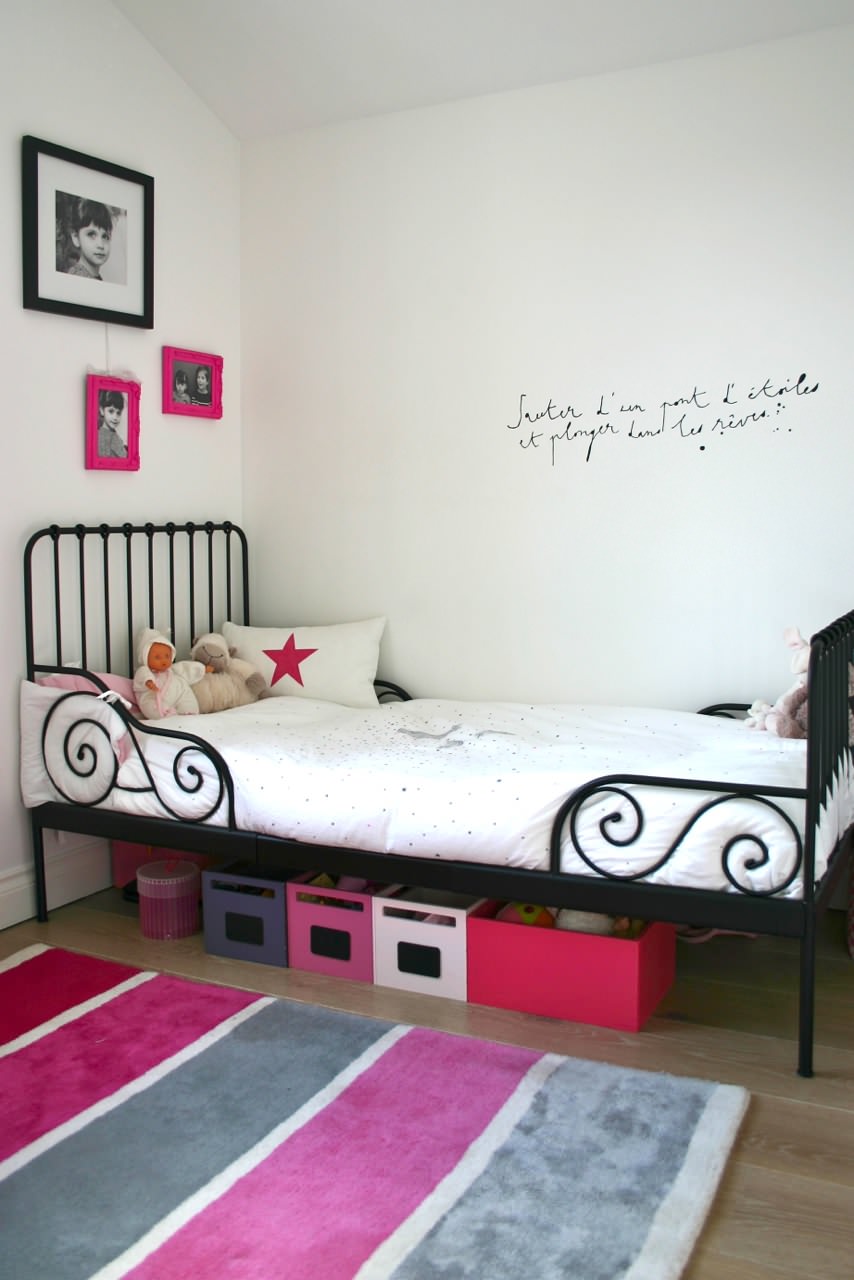 Évidemment. Tout le monde serait tellement plus agréable à vivre en suivant ce charmant mot d’ordre, qu’il est amusant de retrouver sur la porte d’une chambre parentale. Pas mal aussi, l’idée d’un message en grosses lettres sur une porte, qui déborde allègrement sur les murs.