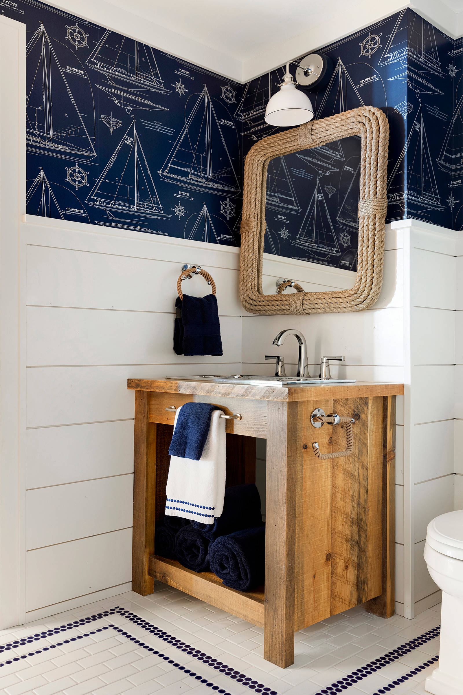 Embarquement immédiat pour l’espace nuit ! Cette idée traditionnelle d’une rampe naturelle en cordage s’inspire directement des accès de bateaux ou même de leurs voilures. Disposez plusieurs rivets sur le mur de façon régulière et terminez par un bon nœud, marin si vous le souhaitez. En version monocorde.
