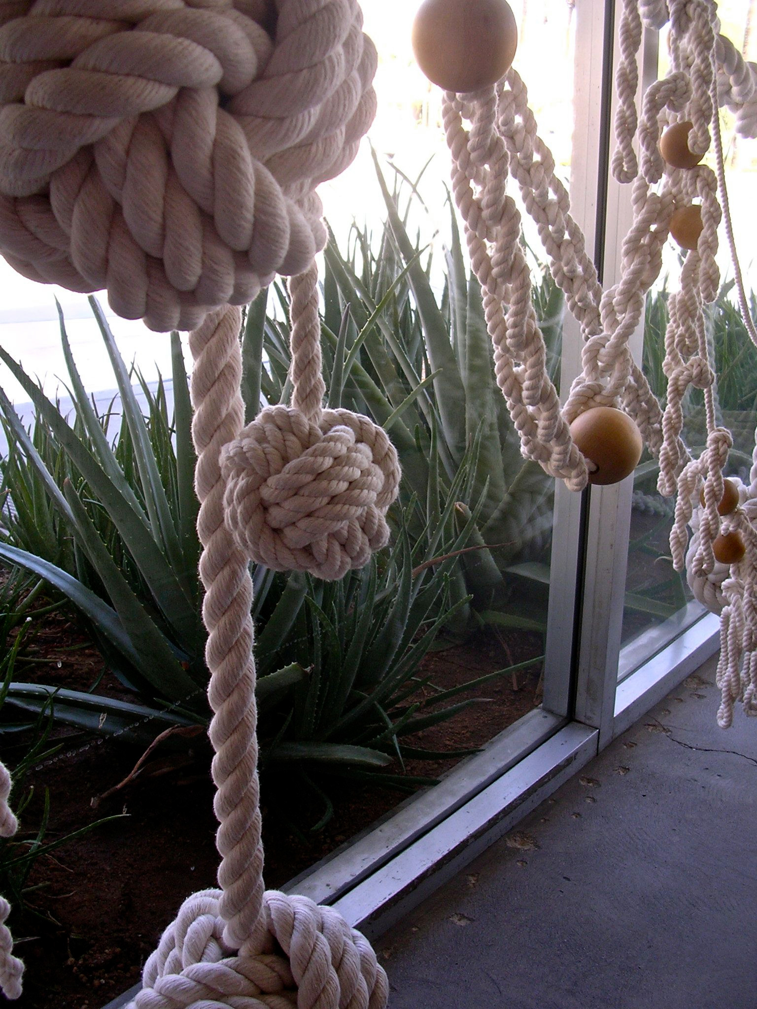 Pour une déco boho, vous choisirez des cordes plutôt blanches, que vous nouerez, tresserez, entrecroiserez en les décorant éventuellement de grosses perles rondes en bois.
