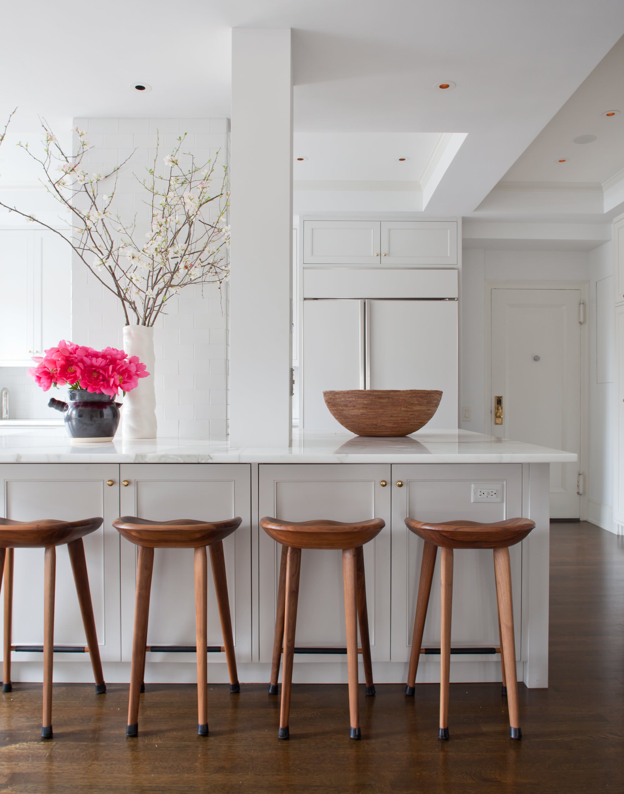 Si votre cuisine est un petit espace, les tabourets seront, une fois de plus, les plus adaptés. Il existe d’ailleurs des modèles très design, comme ceux-ci, qui épousent joliment la forme ronde de la table.