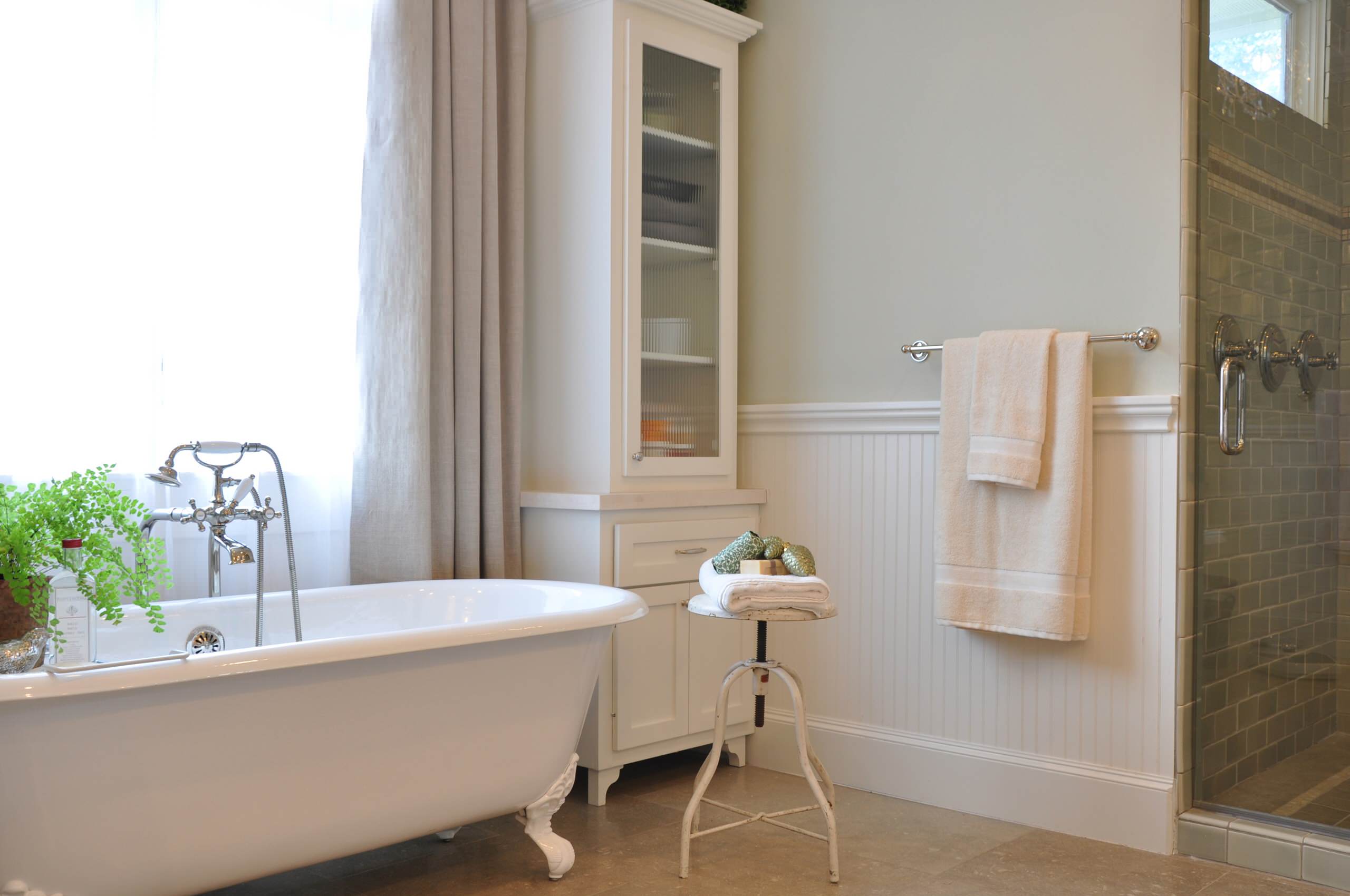 Autour de la baignoire, il existe souvent peu de place disponible pour disposer nos produits du quotidien. On utilise alors des accessoires qui ne sont pas toujours très charmants… Le tabouret se montrera donc très utile, tant au niveau de la déco que d’un point de vue pratique, notamment si votre baignoire ne possède pas de rebords.