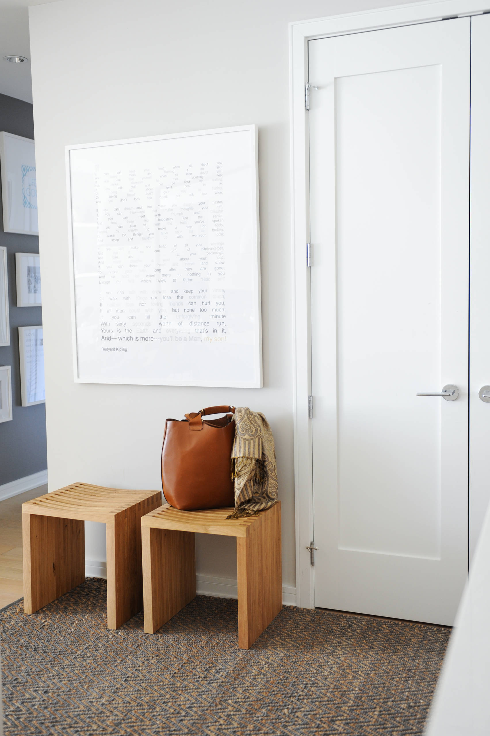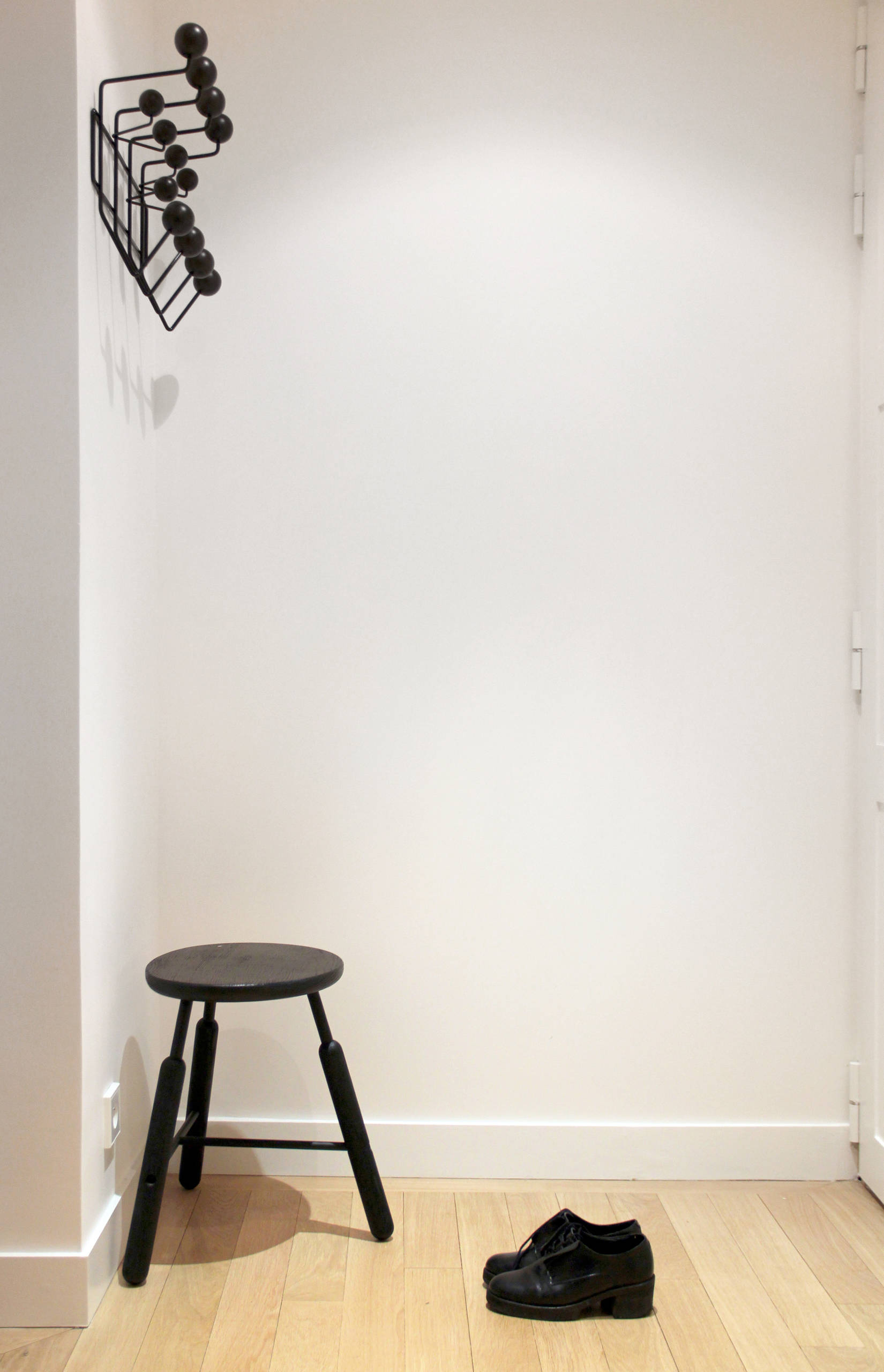Un portemanteau + un tabouret : c’est ce qu’on appelle une entrée épurée et fonctionnelle.