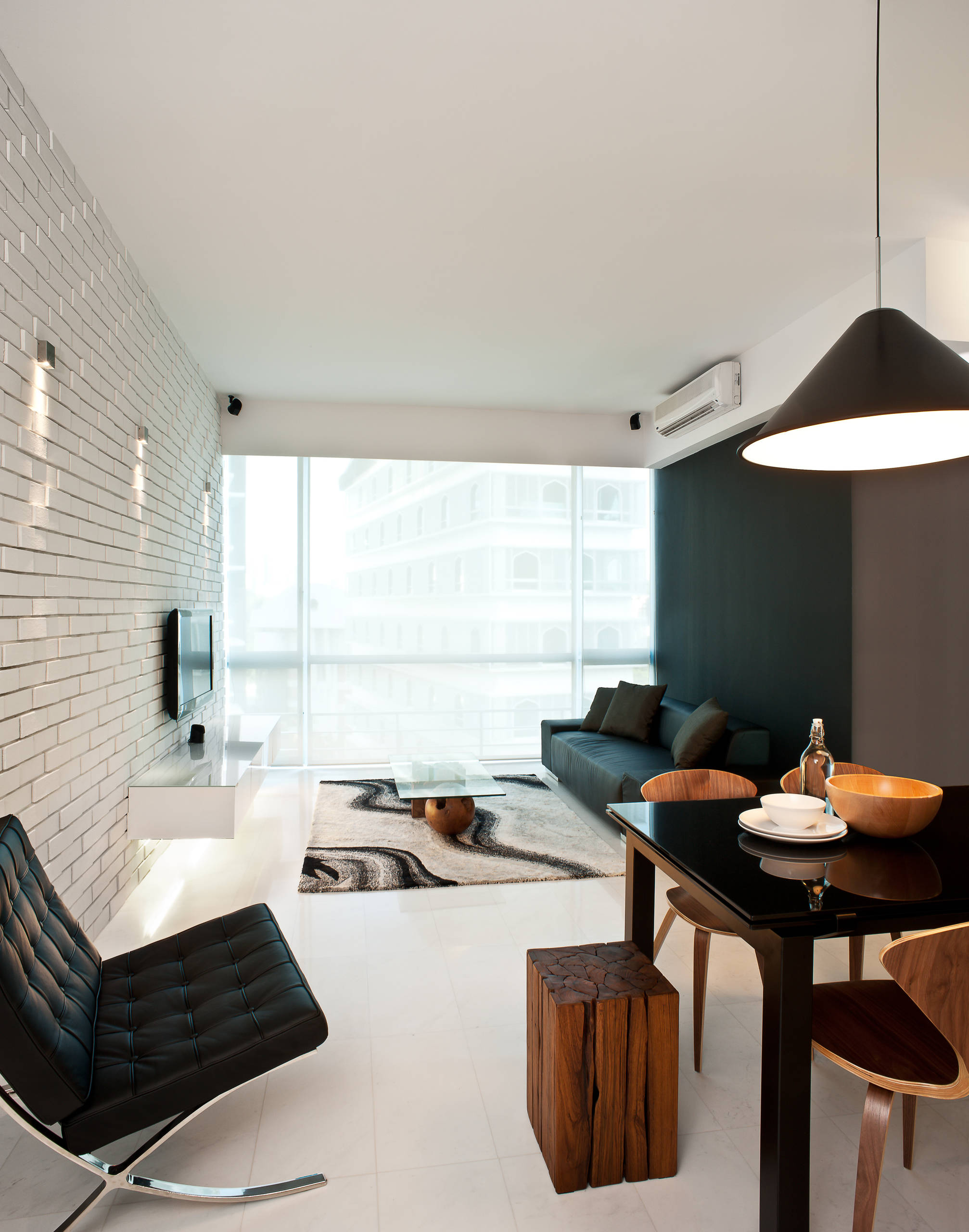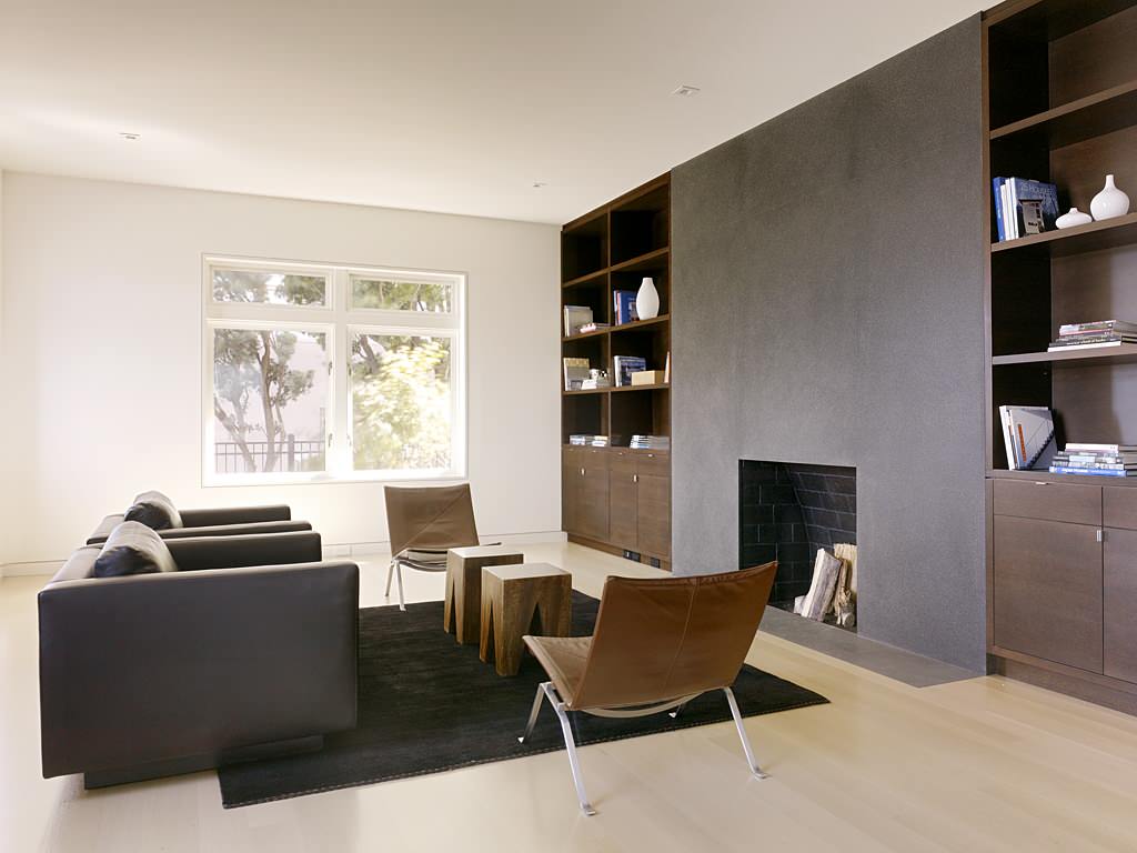 Dans ce séjour, la décoration est réalisée selon une règle symétrique qui apporte un aspect plus ordonné et plus rigoureux à la pièce.