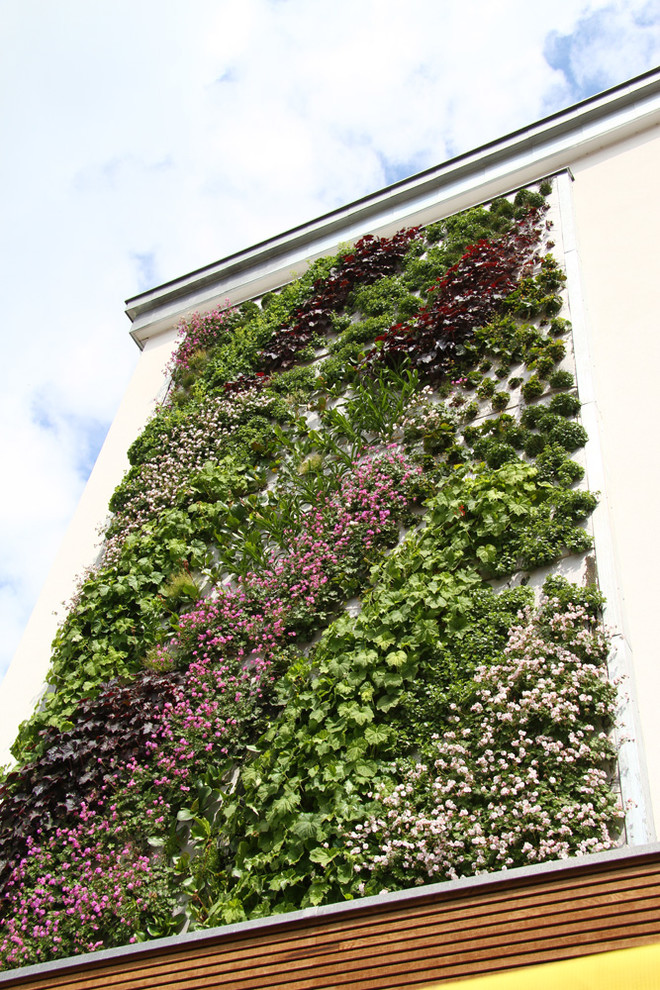 En environnement urbain, où la terre peut manquer pour planter des espèces grimpantes, des entreprises spécialisées peuvent prendre le relais pour aménager les façades. Les systèmes autonomes d’irrigation et de fertilisation sont installés dans la maison. Les propriétaires choisissent les plantes qui habilleront les murs extérieurs, les professionnels se chargent ensuite de l’aménagement et de l’entretien de la façade végétalisée. En trois mois, le mur est totalement recouvert.