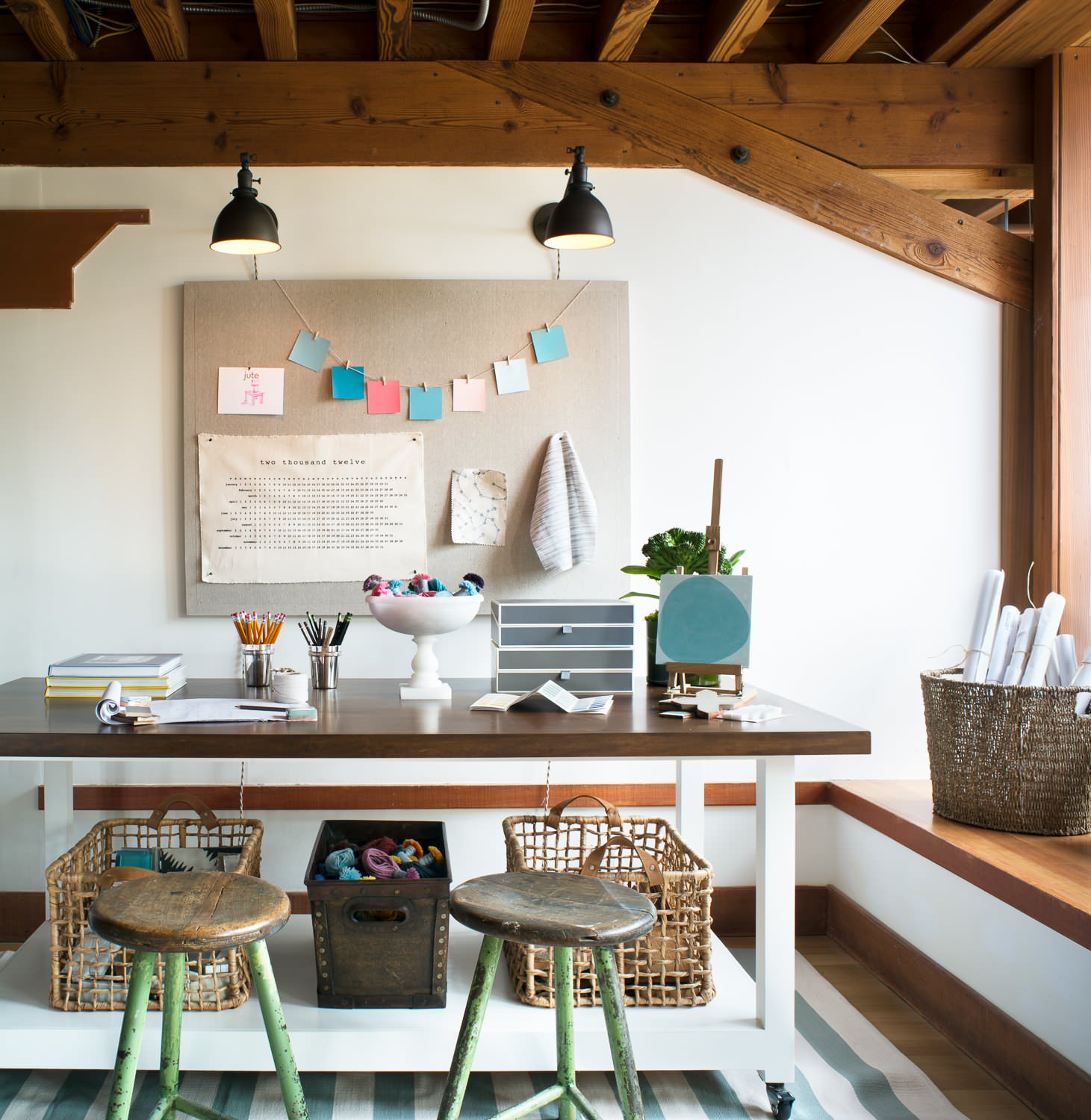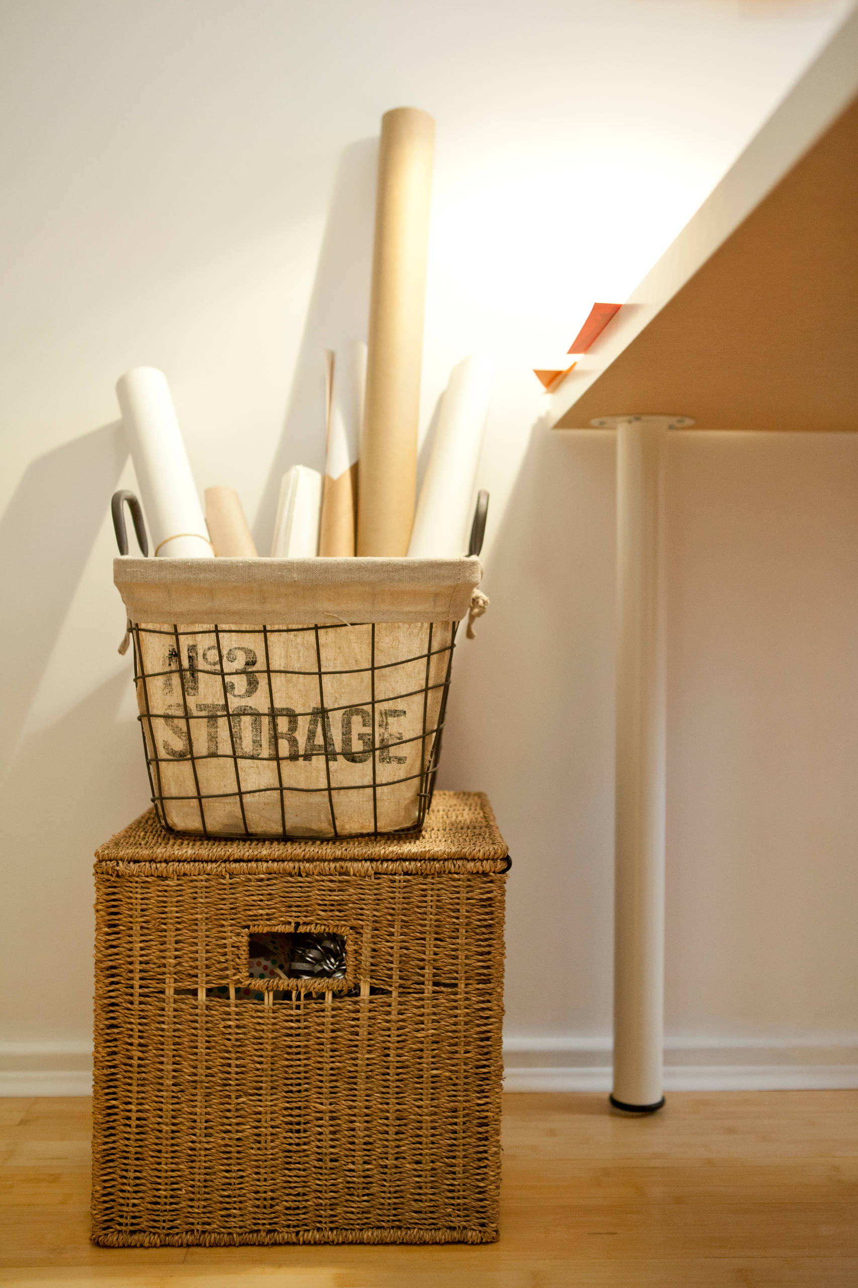 Multipliez les éléments de rangement efficaces et charmants comme les cagettes en fer et en bois, les boîtes colorées et graphiques ainsi que les bocaux transparents. Vous pourrez ainsi trier efficacement vos fournitures et documents et leur offrir des places de choix.