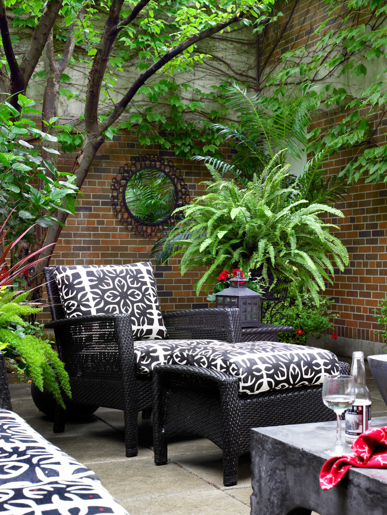 Quelques fougères en pot, une lanterne (toro), comme celles destinées à l’origine à éclairer l’entrée des temples bouddhistes, et votre petit espace zen s’installe dans le moindre recoin d’une terrasse ou d’une cour intérieure.