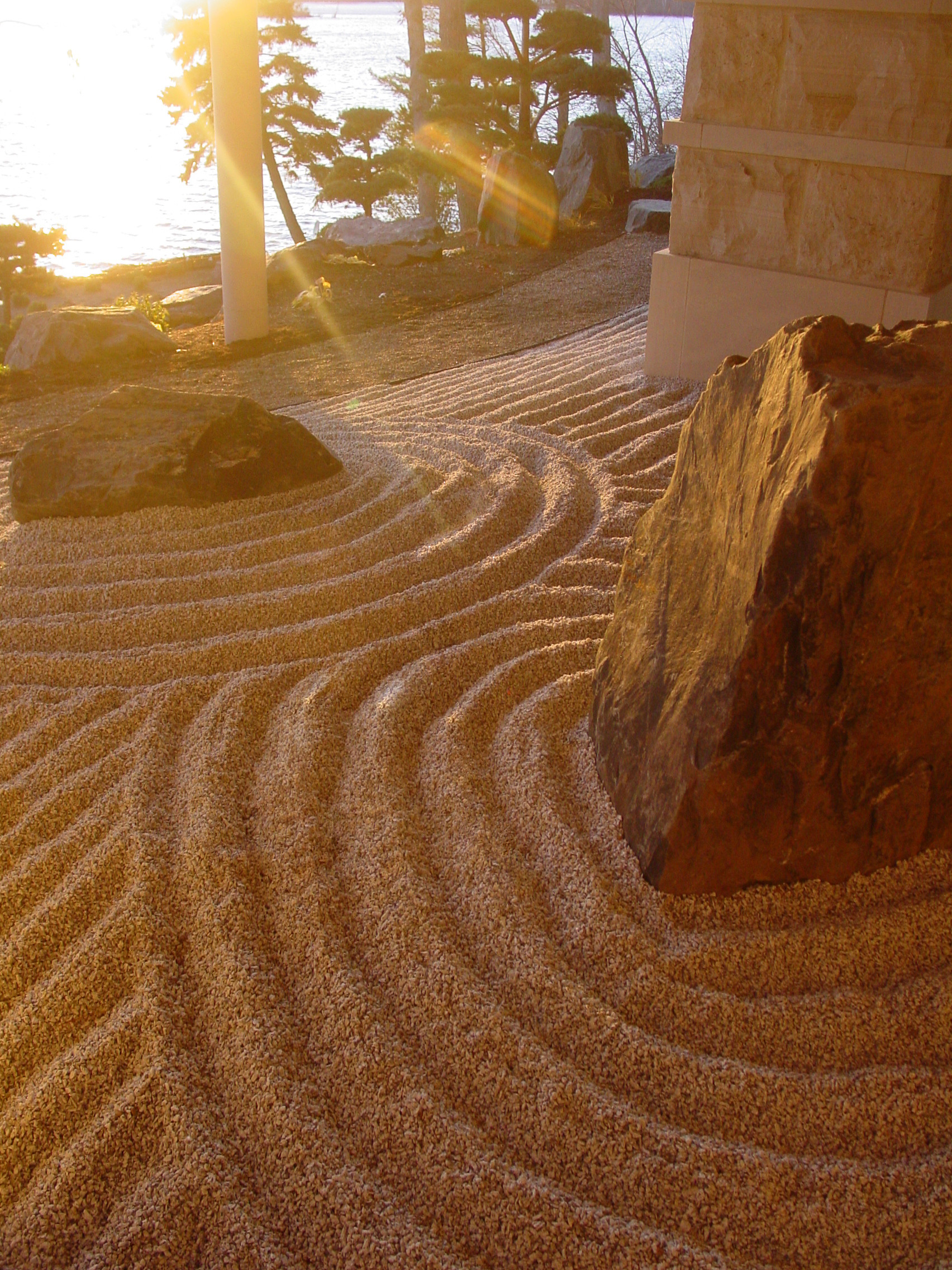 Grande différence entre le jardin japonais traditionnel (nihon teien) ou le jardin zen et nos jardins d’agrément européens : on ne s’y promène pas, on n’y cultive pas, mais on s’y assoit et on contemple le paysage qu’ils offrent, parfois miniature. Deux styles s’offrent à vous : le jardin purement japonais, qui inclut moult végétaux et un point d’eau, ou le jardin zen, minimaliste. Inspiré des petits espaces extérieurs de méditation des moines bouddhistes, le jardin zen est en effet un paysage dit sec, sans point d’eau, faisant la part belle au minéral (karesansui), le plus souvent composé de roches, de sables travaillés au râteau.