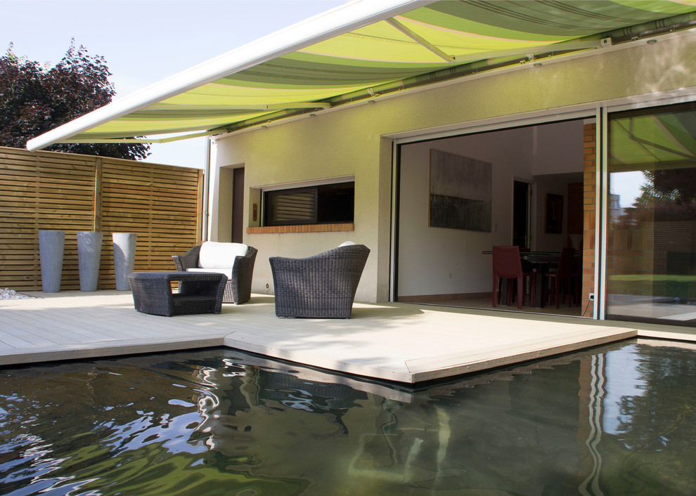 On l’apprécie pour sa discrétion en façade une fois replié et pour son efficacité d’ombrage. Les plus haut de gamme sont électriques avec un coffre de protection contre les intempéries et un repli automatique en cas de vent trop fort, leur plus grand ennemi. Inconvénient : leur tombée (protection solaire) n’excède guère les 4 mètres de large.