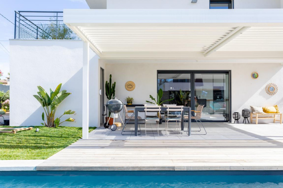 Ces nouveaux modèles permettent de régler le degré d’ombrage qui convient, à la différence de la pergola à lames fixes, voire d’occulter complètement le toit. Les pergolas bioclimatiques aux lames d’aluminium sont même étanches et protègent aussi bien du soleil que de la pluie.