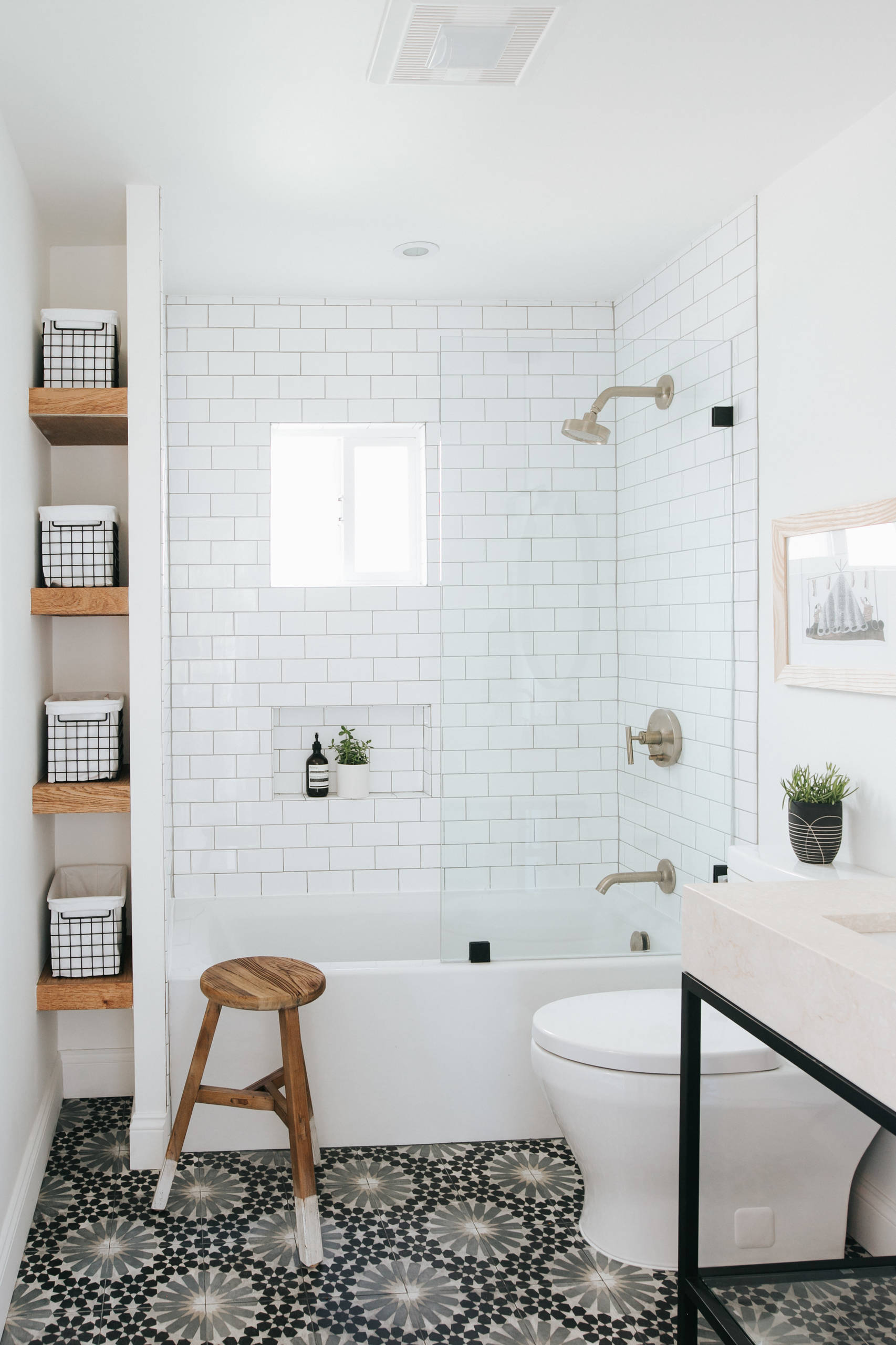 Le tablier de la baignoire figure également parmi les espaces oubliés dans la salle de bains. Pour gagner en rangement dans les petites salles de bains, agrémentez-le d’étagères ouvertes…