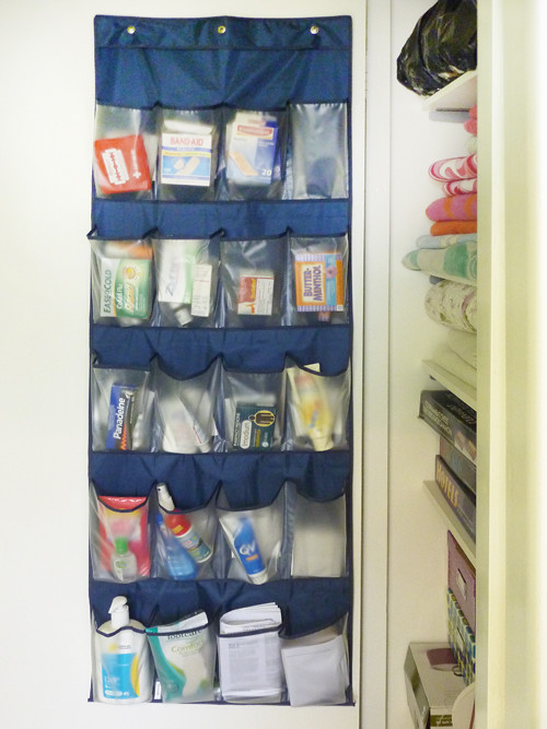 Voici une bonne idée gain de place qui nous vient d’Australie. Un rangement d’appoint pour chaussures a été détourné en armoire à pharmacie. Il peut se fixer à l’intérieur d’un placard de salle de bains par exemple.
