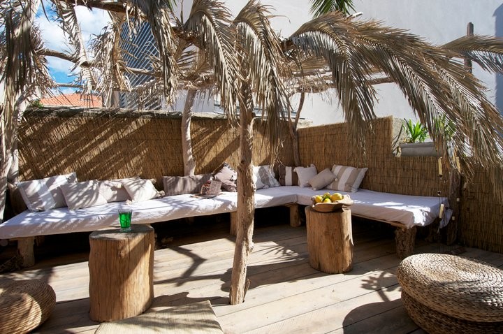 Ici, on place en guise de séparation du canisse, un peu vintage donc tendance, qui peut aussi servir à couvrir une pergola. On utilise des rondins pour les supports de bancs d’appoint ou recyclés en tables basses, ou de grandes branches de palmiers, qu’on trouve certes plus aisément dans le sud de la France. Ambiance exotique pour cette terrasse toulousaine !