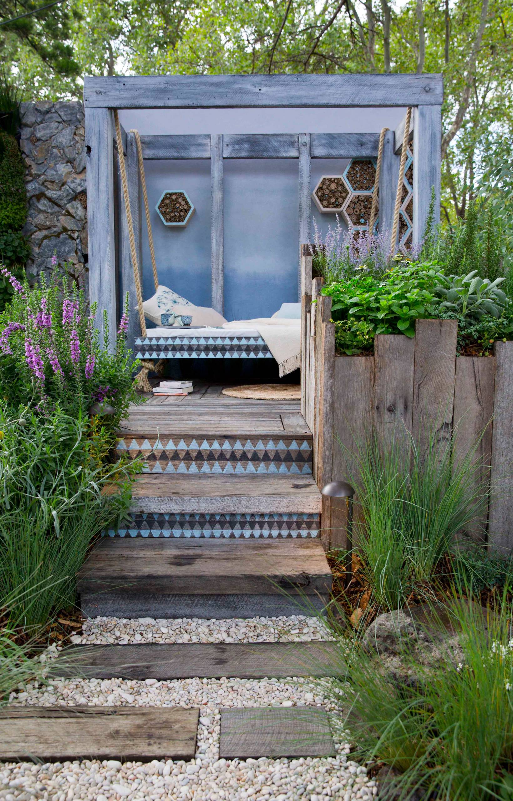 Les vieilles planches de bois sont encore prêtes à tout. Ici, elles sont réemployées en palissade destructurée, en pas de jardin, en marche d’escalier, mais aussi pour donner à un joli cabanon des airs de farniente. Vous les choisirez imputrescibles et résistantes à l’humidité ou vous les traiterez.