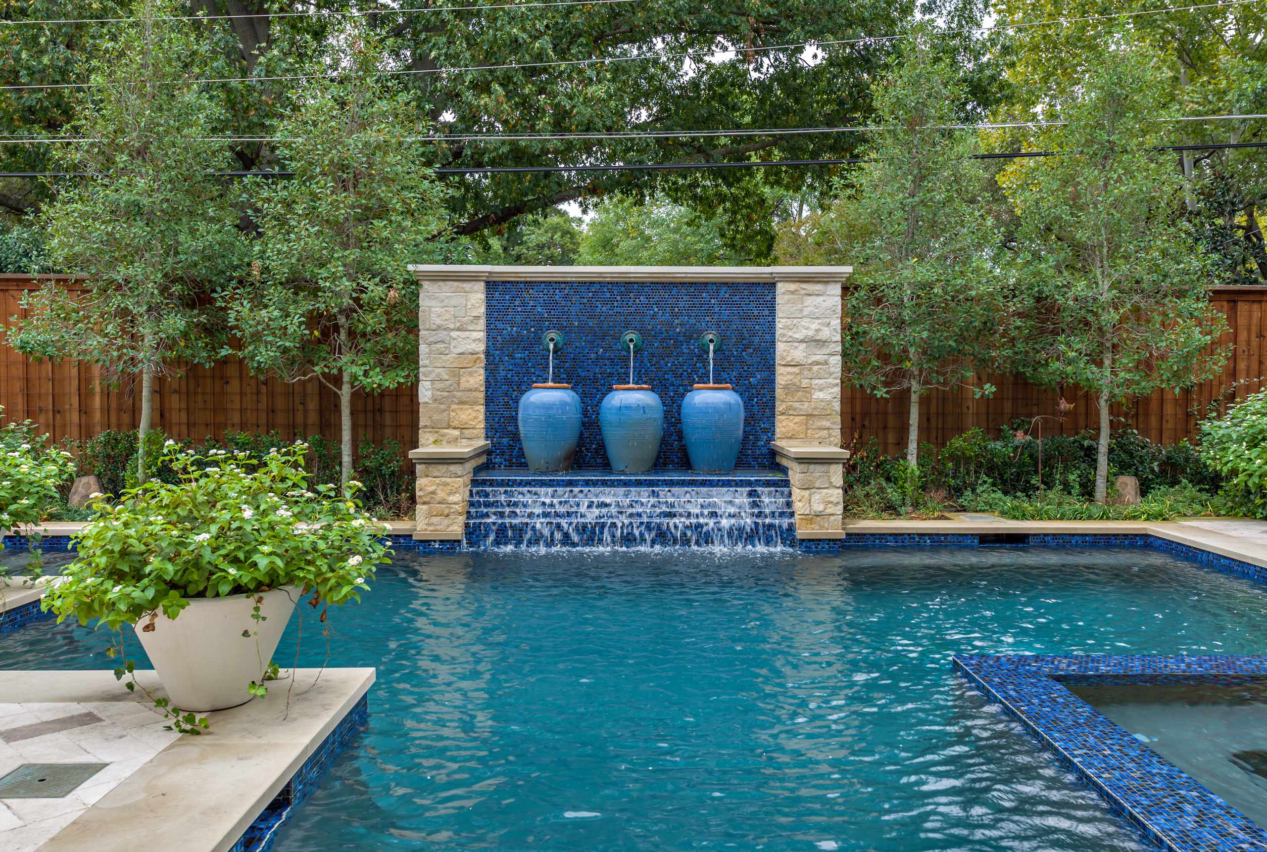 Permis de rêver pour ce plan d’eau situé à Dallas. L’idée est trop belle pour ne pas hésiter à la piquer : trois grandes jarres ou pots monumentaux pour recueillir l’eau avant qu’elle ne s’écoule vers le bassin. Côté becs déversoirs, il est encore possible de chiner de vieilles têtes de cygne ou de lion en bronze ou en laiton, au petit bonheur la chance et à tous les prix.