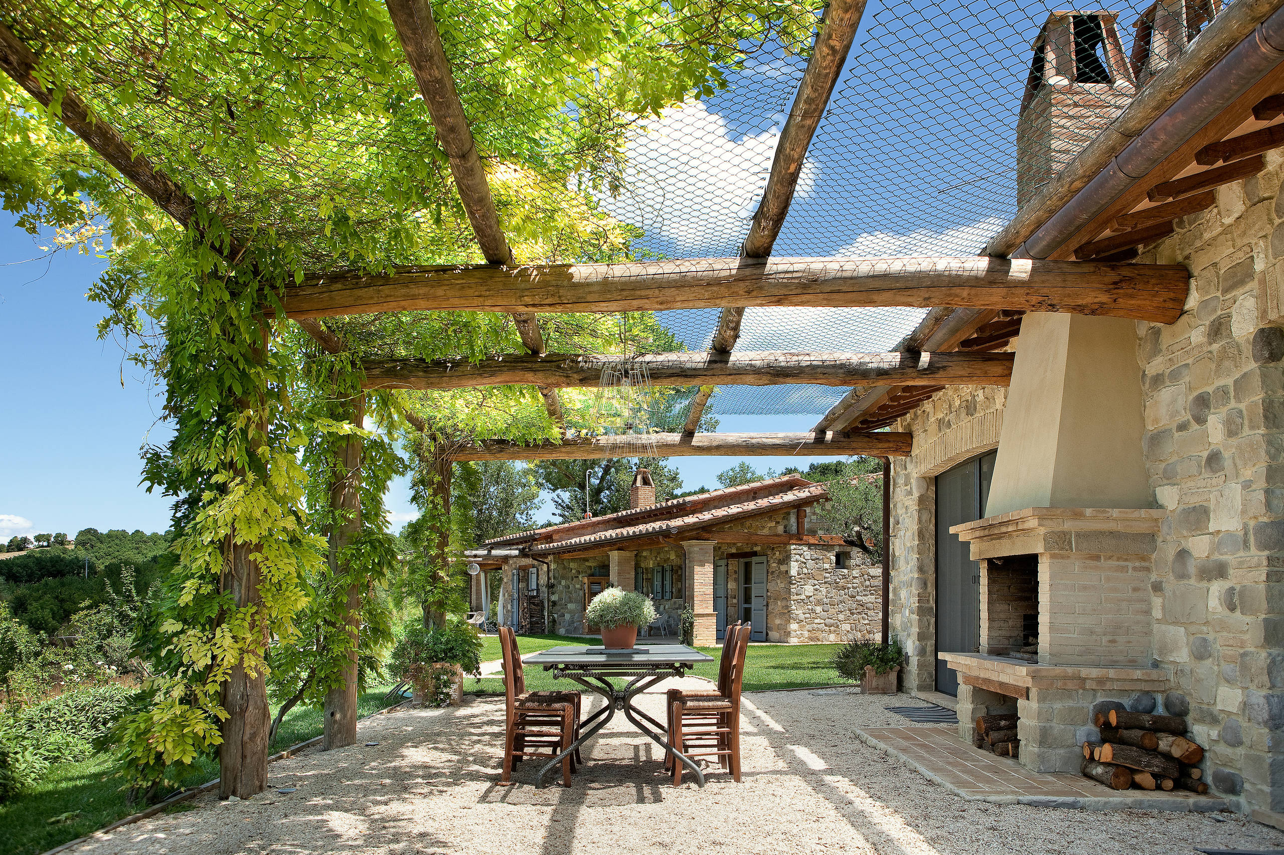 Dans l’esprit méditerranéen, cette pergola emprunte quelques grumes de bois non taillées, du grillage à poules et bien entendu une végétation grimpante : une vigne vierge, de la glycine, une clématite. Le paradis, tout simplement.