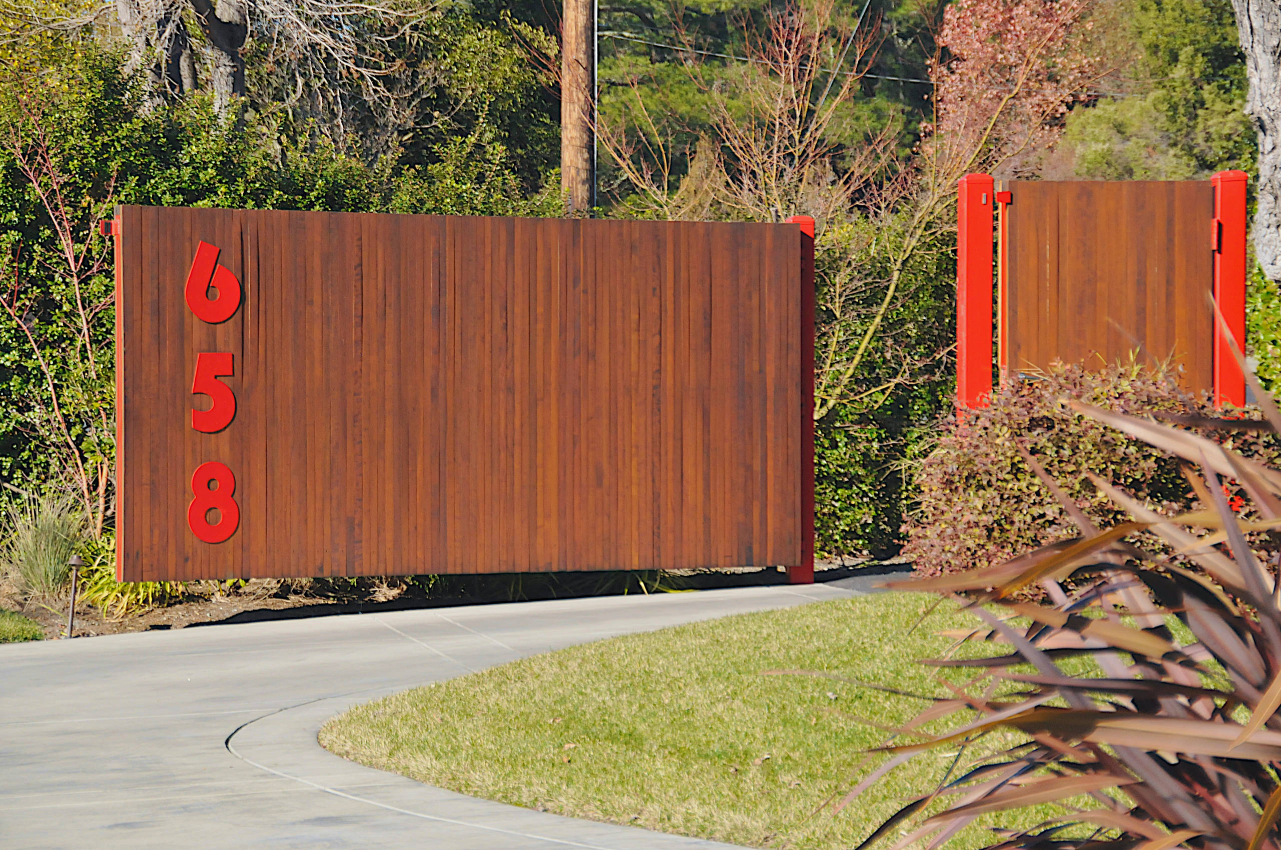 Avec les maisons modernes et leurs vitrages surdimensionnés, toute la difficulté est de pouvoir garder son intimité. On utilise alors le paravent comme un filtre aux regards extérieurs, comme dans cette maison. Et on tire parti sans hésiter de ce joli pan pour marquer de manière graphique le numéro de la maison. Sans forcément voir l’intérieur, on sait que l’on est arrivé à destination.