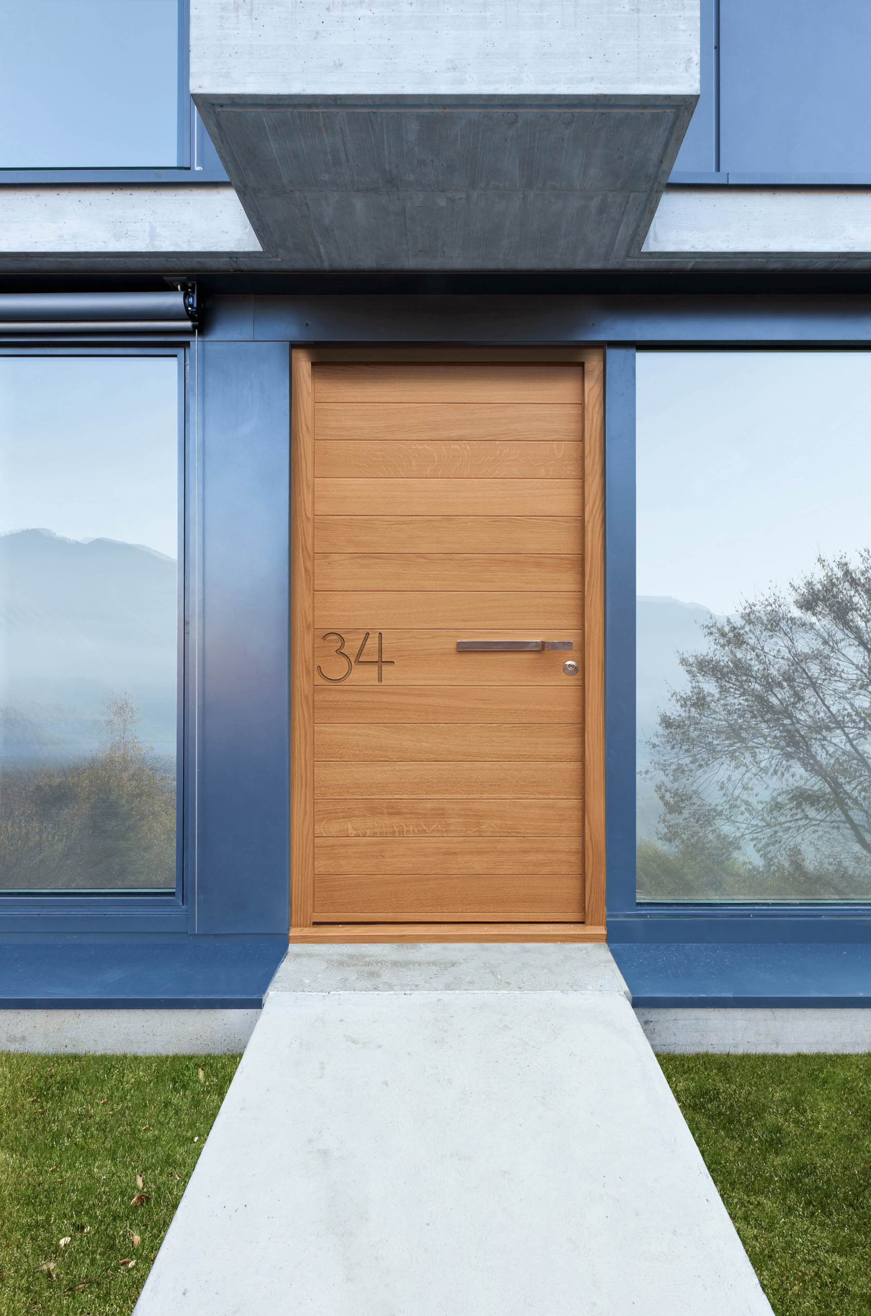 Lorsque l’on pense numéro de maison, on imagine toujours quelque chose de rajouté en façade, pas trop éloigné de la porte. Cette association numéro/accès évite en effet toute confusion. Pourquoi ne pas jouer sur cette idée et apposer votre numéro directement sur la porte ? Aligné à la poignée et géométriquement positionné, il n’est plus une pièce rapportée mais fait partie d’un tout. Simple et efficace !