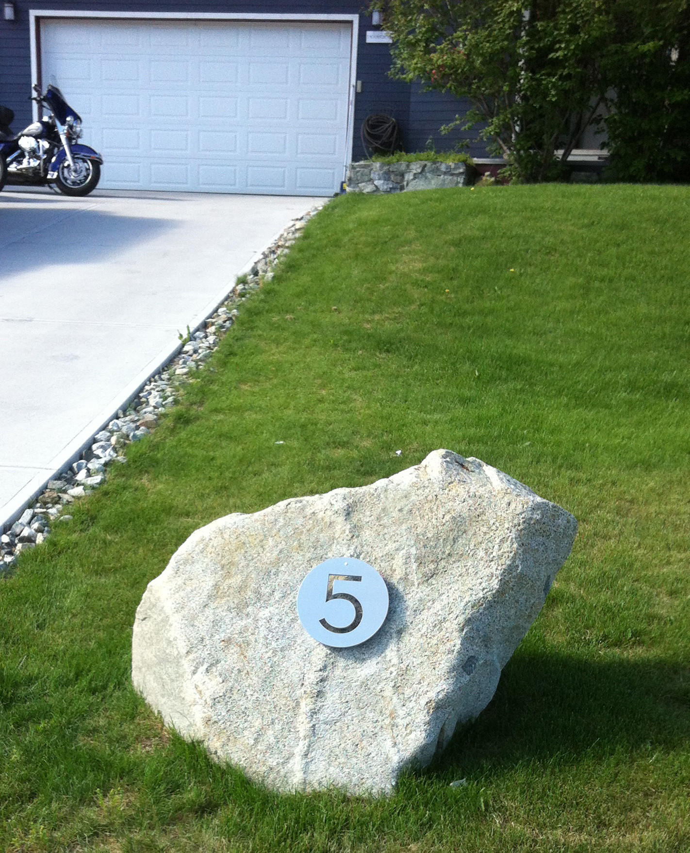 On crée la surprise en affichant le numéro de la maison sur un élément du jardin.