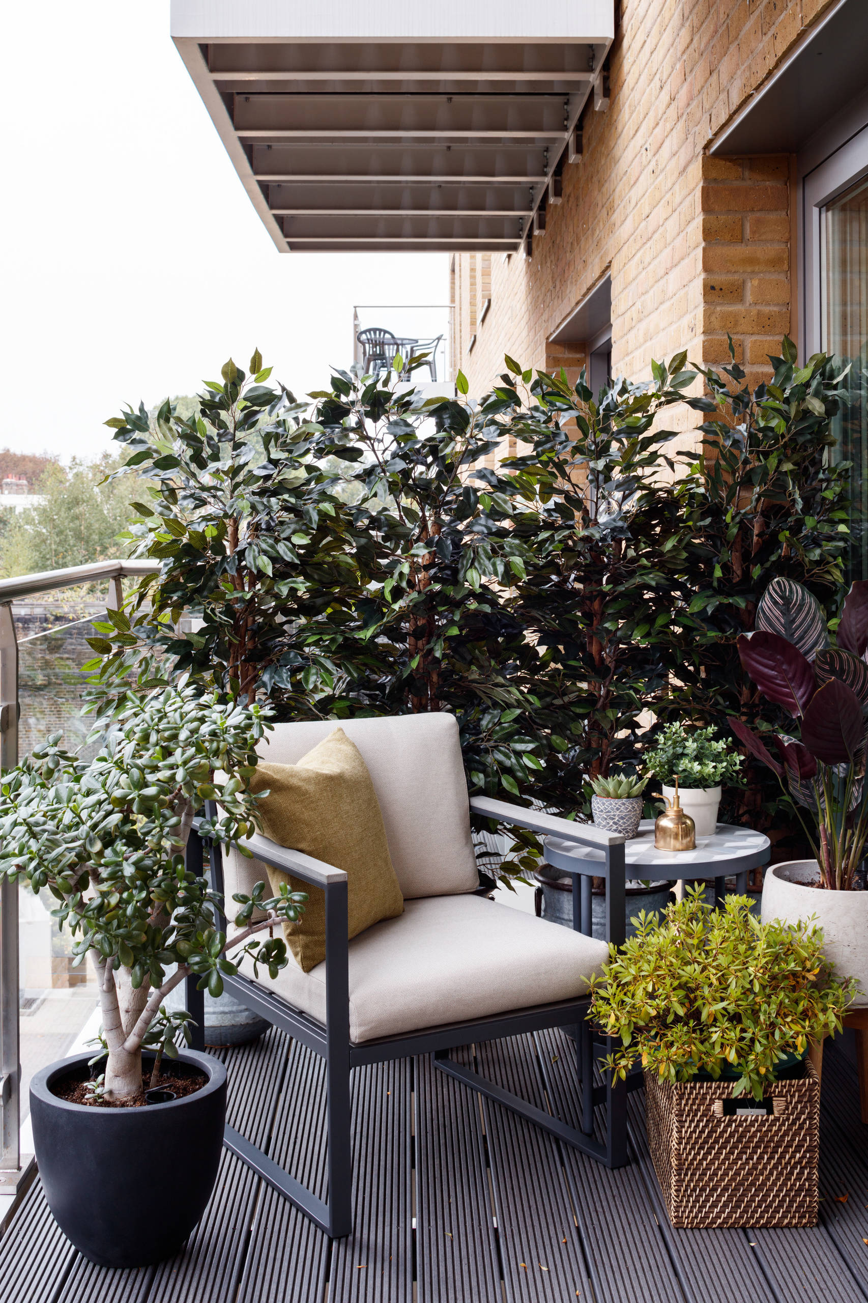 La petite taille de ce balcon londonien n’a certainement pas freiné les envies de verdure de ses propriétaires. Ces derniers ont aménagé un coin cosy à l’aide d’un simple fauteuil et sa table d’appoint associée. Et pour en profiter en toute tranquillité, ils ont tout misé sur les plantes en pot, présentes en grand nombre afin de protéger l’espace des vis-à-vis.