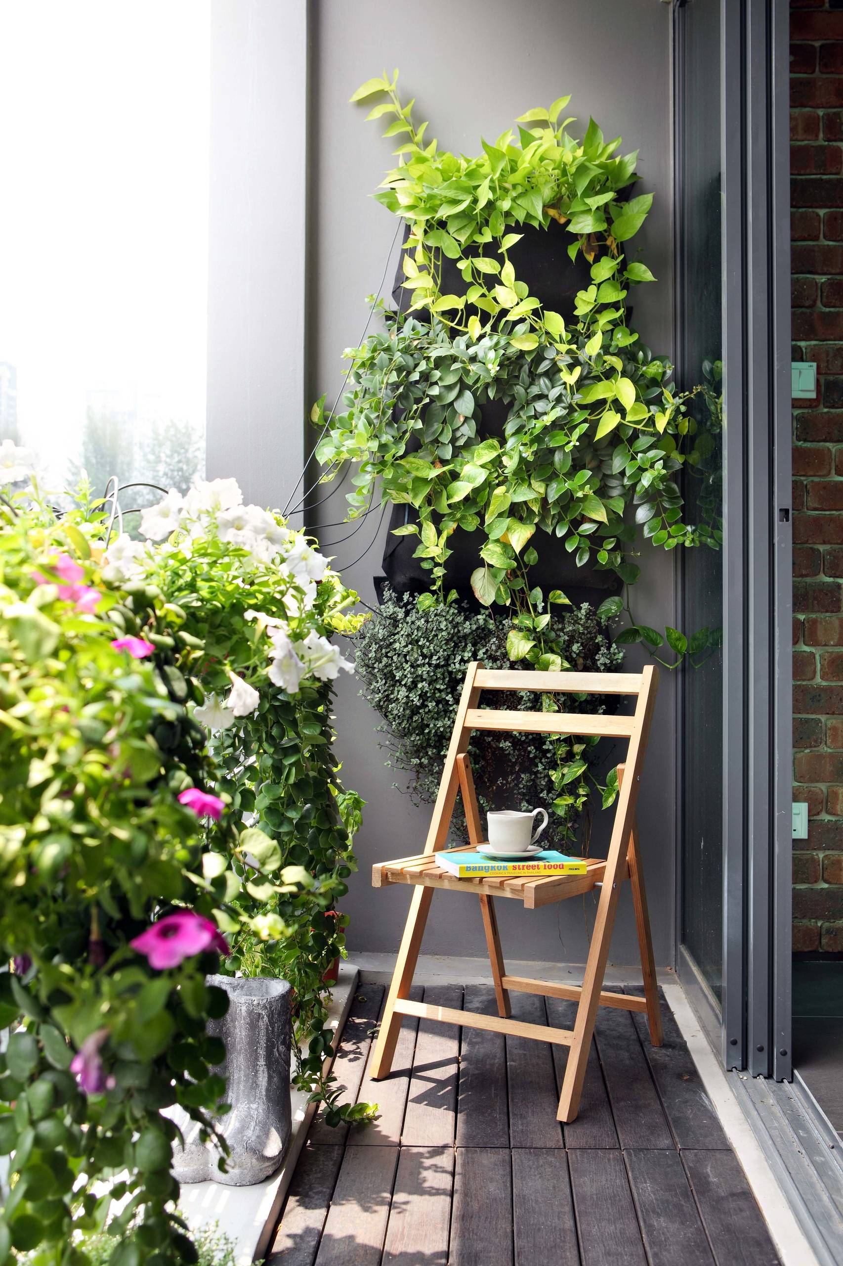 L’aménagement verdoyant de ce petit balcon déco nous ferait presque oublier qu’il se trouve en plein dans la ville de Singapour. En plus des plantes fixées aux murs, le garde-corps est complètement recouvert par des végétaux retombants, dissimulant totalement la vue sur la ville et ses vis-à-vis.