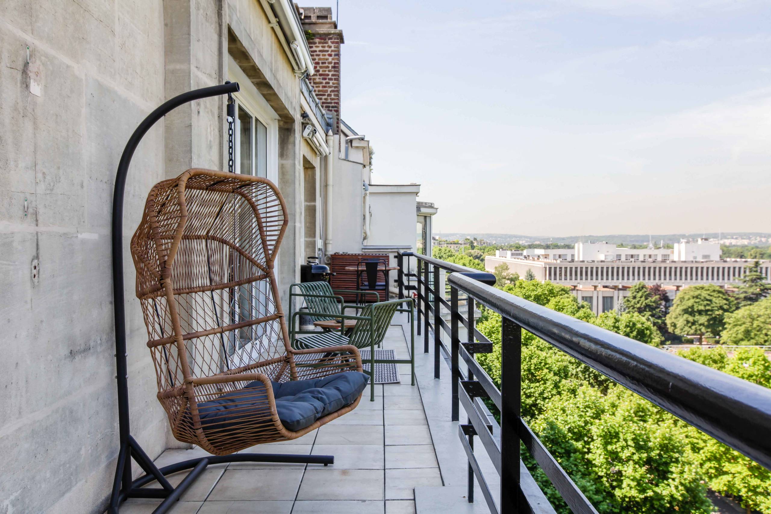Ici, on se laisse naturellement séduire par la présence du fauteuil suspendu au-dessus de la capitale. Comment ne pas être tenté de se laisser bercer en admirant le sublime panorama qui se déploie juste devant ? Le reste de l’aménagement est tout aussi plaisant, notamment le petit coin repas avec son barbecue situé tout au bout du balcon.