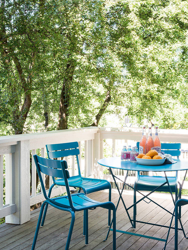 L’astuce : Plus haut que le mobilier de jardin, le garde-corps offre aussi de l’intimité au coin repas aménagé sur le balcon.