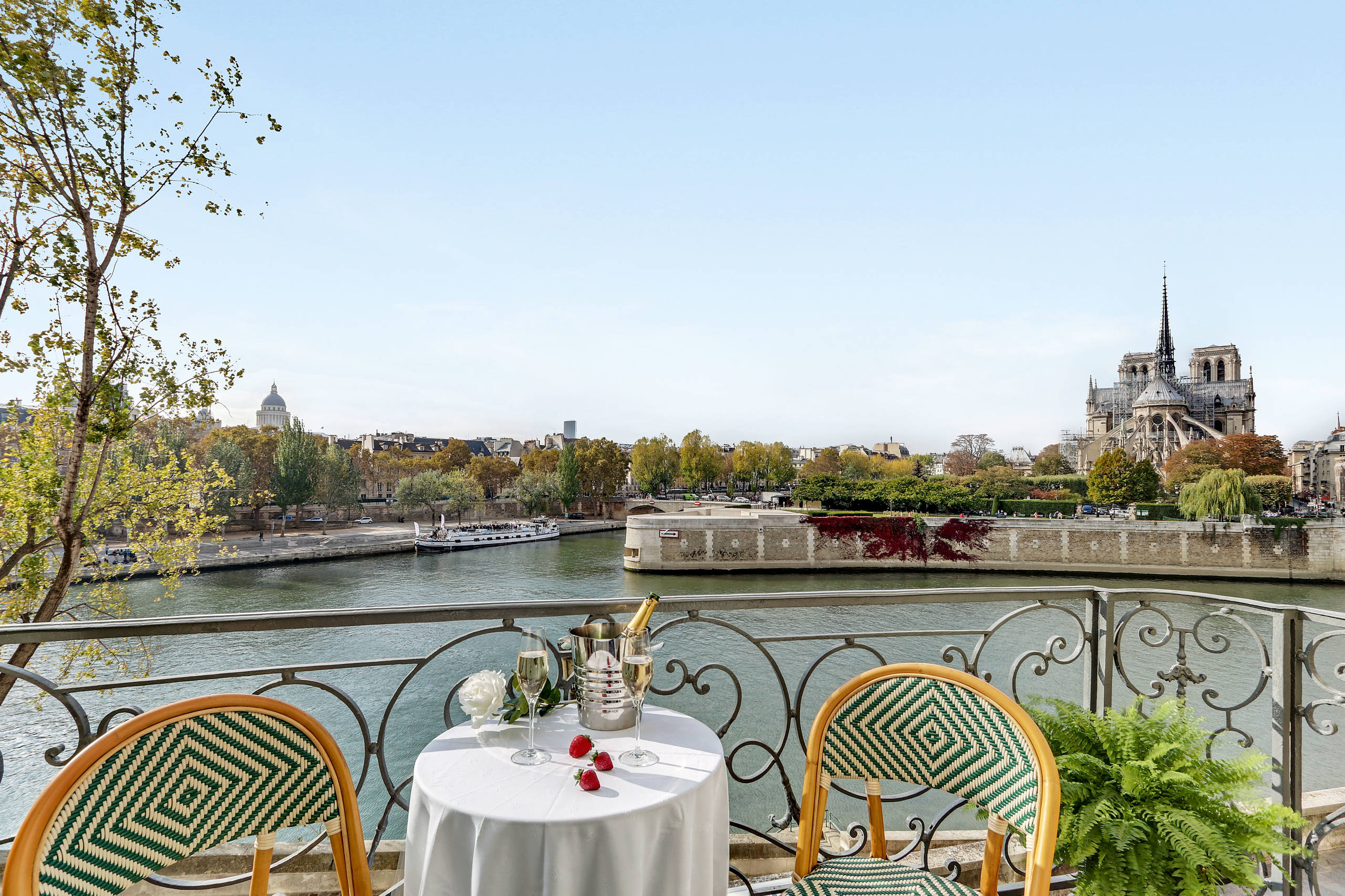 Difficile de se tromper sur la situation de ce balcon, qui dispose d’une vue splendide sur Notre-Dame de Paris. Comme si elle ne se suffisait pas à elle-même, cette dernière est mise en valeur par le choix des chaises bistrot pour l’aménagement, qui ne sont pas sans rappeler les fameuses terrasses de la capitale.