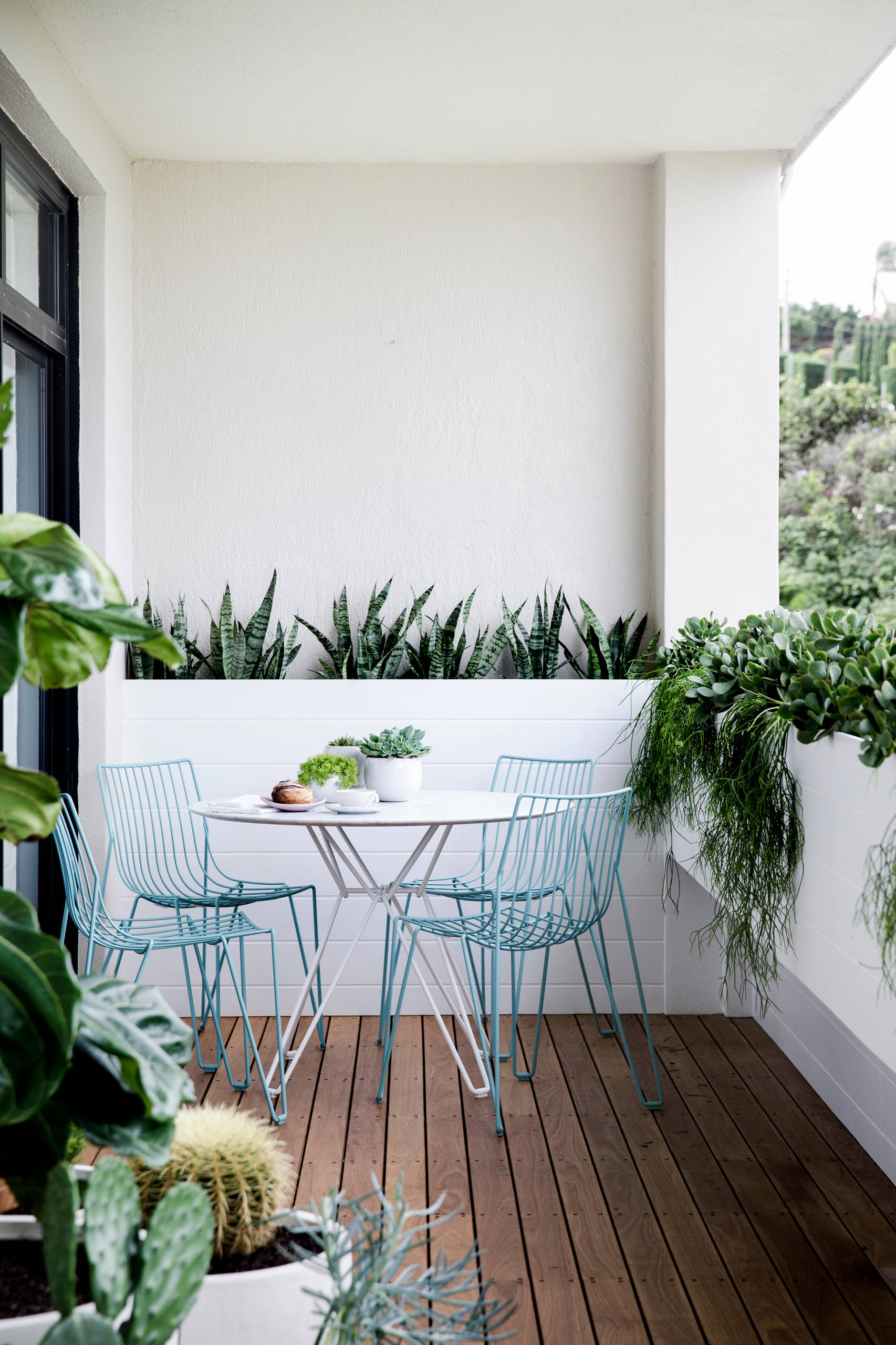 Le garde-corps de ce balcon déco de Sydney est également composé de verdure, mais de manière différente. Les plantes ne font pas que le recouvrir, elles sont carrément plantées à l’intérieur. En effet, l’espace est délimité par de grandes jardinières qui l’entourent complètement de végétation.